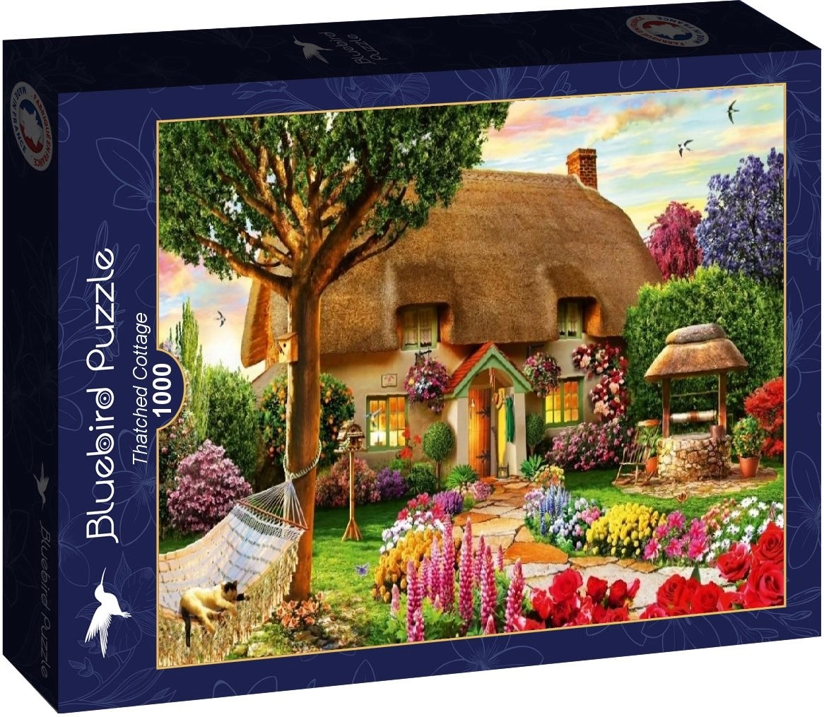 Uživajte v sprostitvi s kakovostnim puzzlom BLUEBIRD z motivom tradicionalne slamante koče. Sestavljanje iz 1000 kosov ponuja dolge ure zabave, čudovit končni motiv v velikosti 69 × 48 cm in je idealno za ljubitelje mirnih podeželskih prizorov.