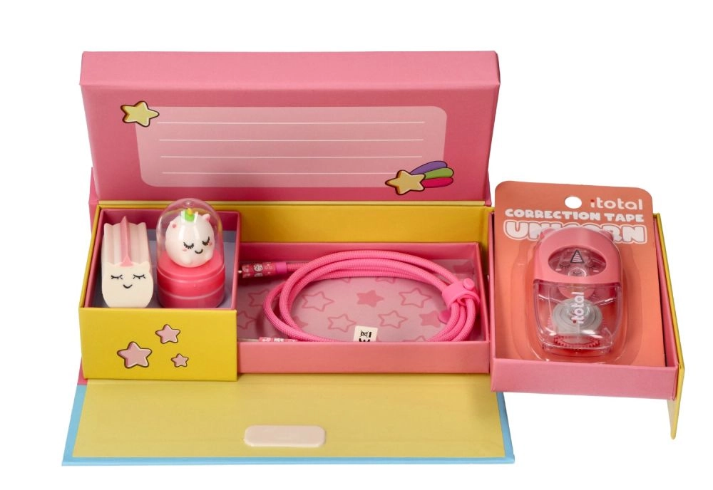 Prisrčni žigi z motivom enoroga iz kolekcije Stay Wild bodo razveselili otroke in odrasle. Praktični zaslon s 36 kosi je idealen za nagrade, ustvarjanje in šolske aktivnosti. Kompaktne mere 3 × 3 × 5 cm na kos omogočajo enostavno uporabo in shranjevanje.