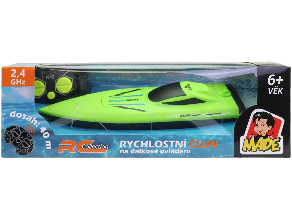 Intuitiven daljinski upravljalnik z velikimi kontrolnimi elementi zagotavlja preprosto vodenje tudi za začetnike. Kompaktna dolžina 26 cm omogoča igro na manjših vodnih površinah – idealno za bazen ali mirno gladino ribnika. Čoln je pripravljen za vožnjo v hipu: le vstavite baterije in se odpravite.