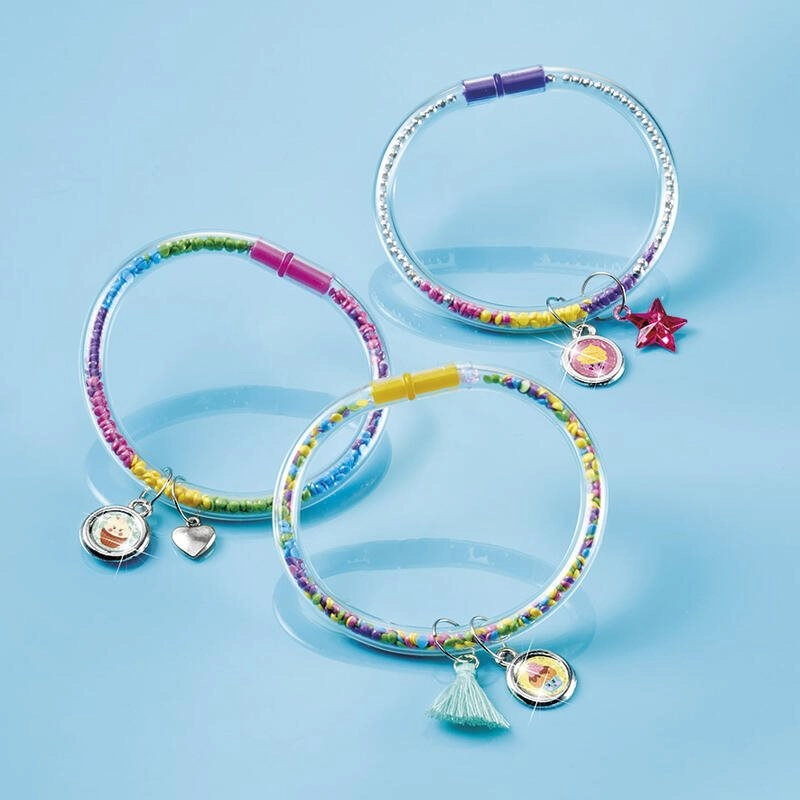 Ustvarjajte unikatne zapestnice, polne bleščanja in domišljije. Ta ustvarjalni komplet prinaša bogat izbor komponent – od kamenčkov in obeskov do cevnih zapestnic in zapiralnih delov – da zlahka sestavite osebne kose nakita natančno po svojem slogu.