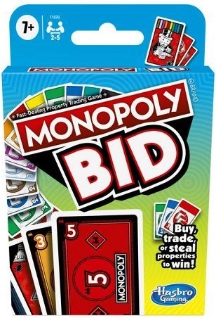 Monopoly Bid je dinamična igra za 2 do 5 igralcev, ki se pomerijo na dražbah nepremičnin. S pomočjo denarnih kart sodelujete na aukcijah, da zberete skupine nepremičnin. Igra vključuje tudi akcijske karte, ki omogočajo prevlado nad nasprotniki in pridobivanje strateških prednosti.