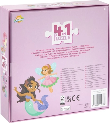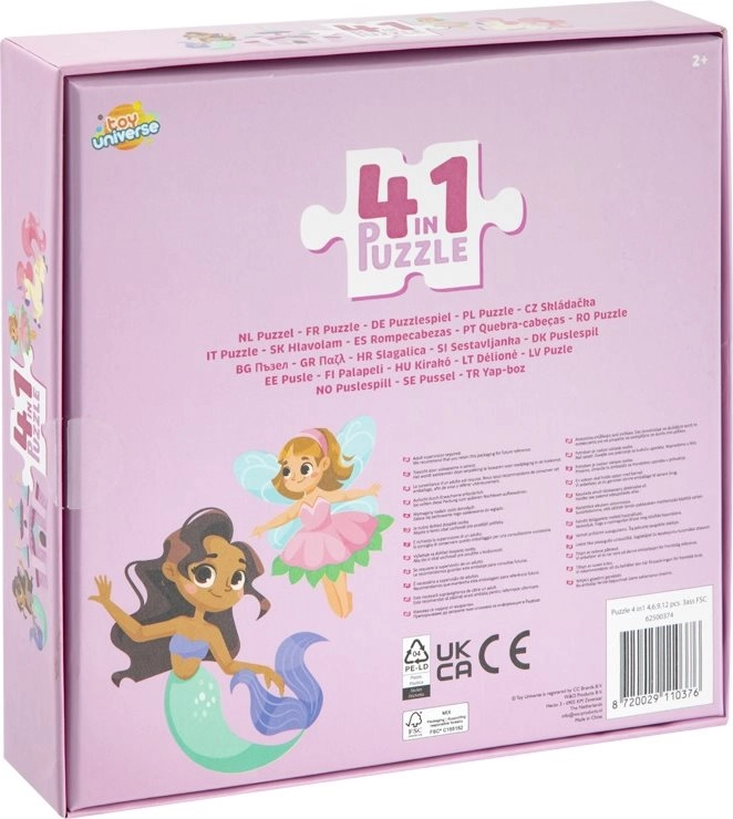 Odkrijte čar sestavljanja s pisanim kompletom 4v1, ki ponuja postopno težavnost za male začetnike in bolj napredne otroke. Štiri motivi pravljičnega sveta so sestavljeni iz 4, 6, 9 in 12 koščkov, pri čemer se z večjim številom koščkov zmanjšuje njihova velikost, zato otroci razvijajo potrpežljivost, fino motoriko in logično razmišljanje.