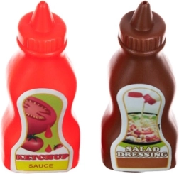 - Pladenj, kečap, čokoladni preliv, žemlja za hot dog, hrenovka, žlica, nož, medaljončki (nuggetsi), džem, lonček s slamico, škatlica za pomfrit, 5× krompirček, 2× žemlja, vafelj, čebula, solata, paradižnik, rezina mesa, sir, mafina (cupcake), preliv