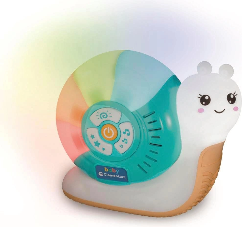 Ta varna in praktična nočna lučka v obliki polža ustvarja čarobno vzdušje za uspavanje. Kromoterapija z nežno spreminjajočimi se barvami in beli šum v spremstvu pomirjujočih melodij podpirajo sprostitev in vzbujajo občutek varnosti pri najmlajših.