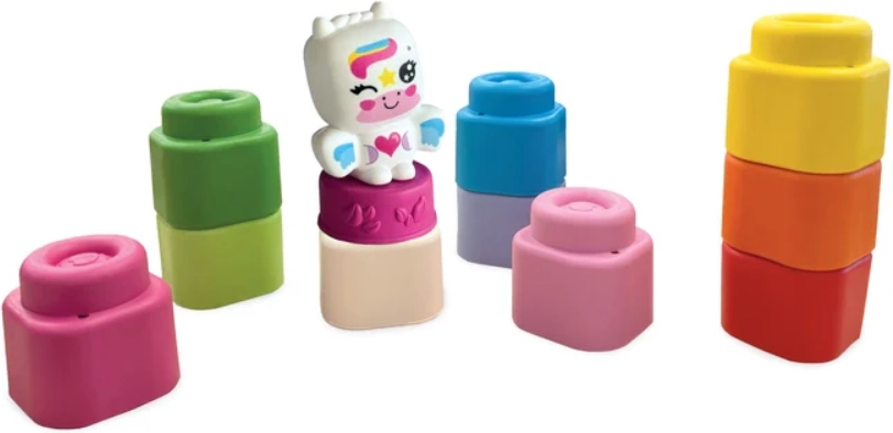 Odkrijte prvo sestavljanko za najmlajše: mehke in varne kocke SOFT CLEMMY v setu 10 kosov z dodatkom prisrčne figurice samoroga. Kocke v živih, veselih barvah so enostavne za prijem, spodbujajo senzorični in motorični razvoj, razvijajo fino motoriko, koordinacijo oko–roka ter kreativnost. Izdelane so iz mehke, netoksične gume, enostavne za čiščenje in prijetnega vonja.