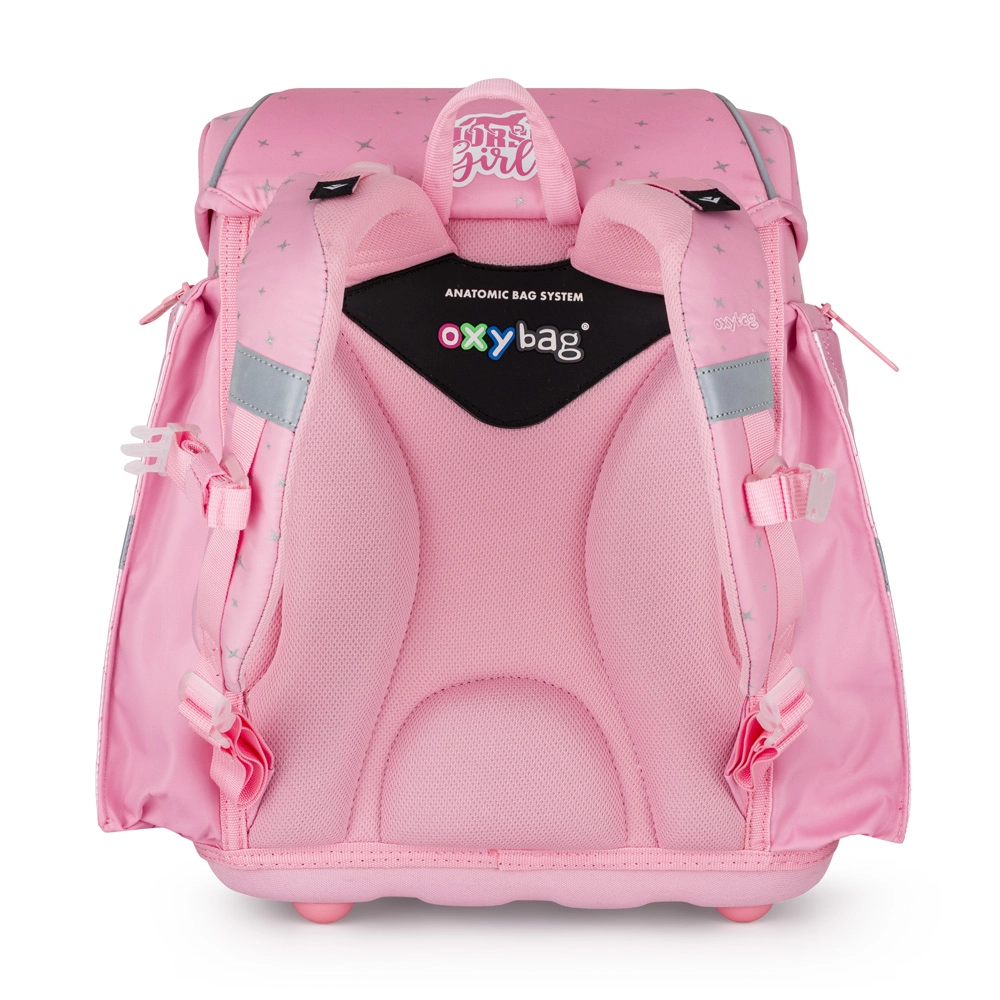 Stilski šolski nahrbtnik Premium Light z romantičnim konjeniškim motivom navduši male šolarke že od višine približno 121 cm. Zahvaljujoč lahki konstrukciji in pametni ergonomiji se izjemno udobno nosi: ima zračno oblazinjeno hrbtišče (Anatomic Bag System), široke podložene naramnike, prsni pas in zatezne trakove za pravilno namestitev na hrbtu.