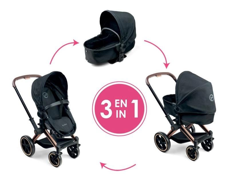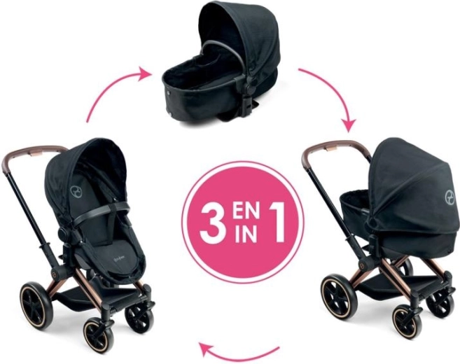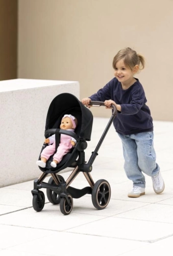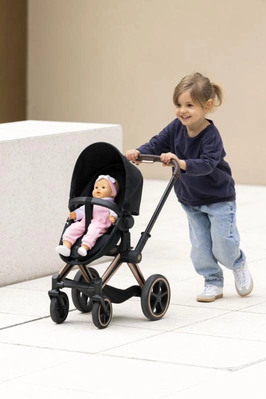 Voziček za punčke CYBEX Black 3 v 1 je bil razvit v sodelovanju z znamko CYBEX in zvesto izhaja iz ikoničnega modela PRIAM. Otroci lahko tako uživajo v igri vlog staršev s stilom in funkcionalnostjo kot pri pravem vozičku. Zahvaljujoč premišljeni konstrukciji služi kot globoka košara, športni voziček in udobna prenosna posteljica.