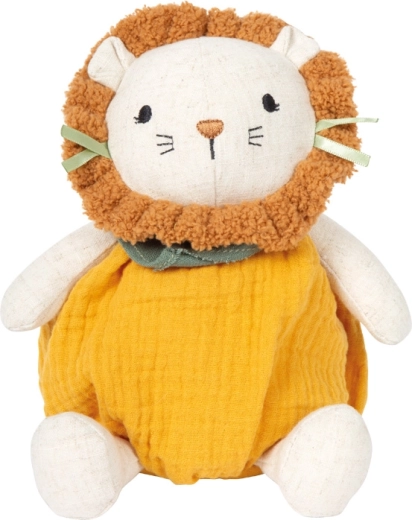 Ta plišasti levček združuje pomirjujoče crkljanje s spodbudo za prve čutne vtise. Zaradi kompaktne velikosti se zlahka prilega vozičku in posteljici ter postane zaupanja vreden spremljevalec vsakodnevnih ritualov. Varni všiti detajli in mehki materiali zagotavljajo udobno in varno igro od rojstva.