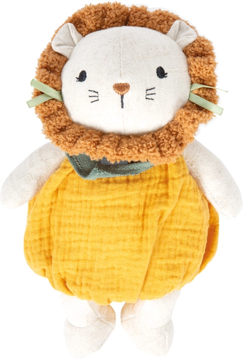 Ljubek plišasti levček znamke small foot je ustvarjen za crkljanje in miren spanec. Ima mehak površinski material, mehko oblazinjeno telo in teksturirano muslinasto tkanino, ki vabi k dotikanju in prijemanju. Odličen prvi prijatelj za dojenčke in malčke, spodbuja čutno zaznavanje in fino motoriko ter se lepo prilega v majhne ročice.