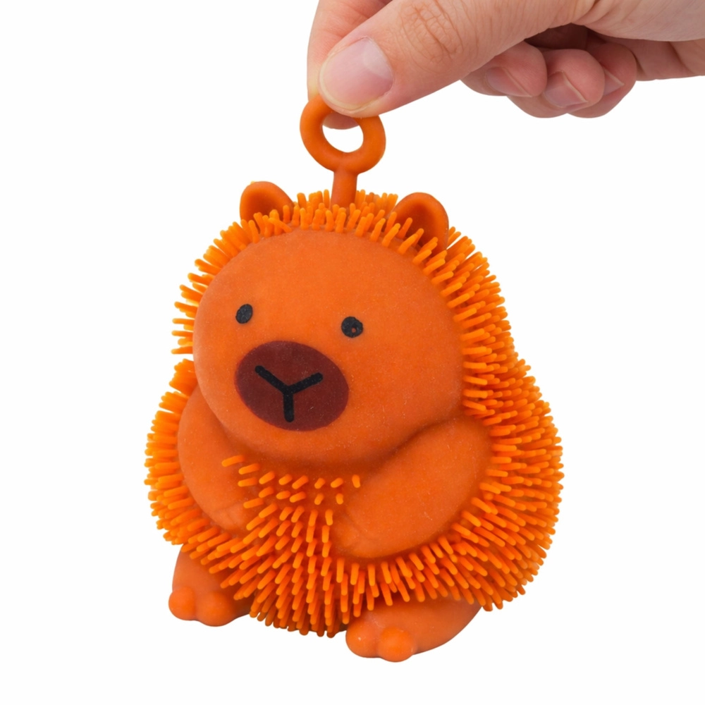 Senzorična kapibara je idealna antistresna igrača za otroke in odrasle. Mehko, elastično telo se odlično prilega dlani in se po stisku hitro vrne v prvotno obliko. Notranja kroglica z LED diodo ob odboju utripne v živahnih barvah, zaradi česar je igrača privlačen sopotnik za vsakodnevno igro in umirjanje.