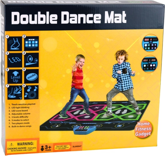Privoščite otrokom doma odmerek gibanja in veselja. Dvojna plesna podloga ponuja barvna dotikalna polja z LED svetlobnimi učinki, ki vodijo igralce v ritmu glasbe. Lahko tekmujete v dvoje ali vadite solo – izberite način in sledite svetlobnim signalom.