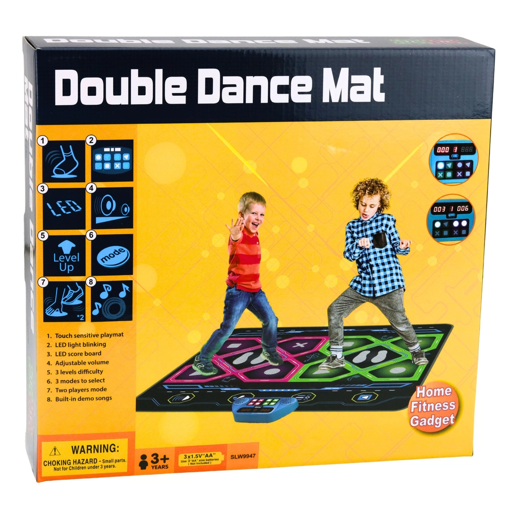 Zabava in gibanje v enem! Dvojna elektronska plesna podloga z LED osvetlitvijo, vgrajeno glasbo in načini za enega ali dva igralca spodbuja otroke k aktivni igri ter razvija koordinacijo, reflekse in motoriko. Zahvaljujoč na pritisk odzivnim dotikalnim poljem in možnosti nastavitve glasnosti je igra dinamična, varna in prilagodljiva starosti ter spretnostim.
