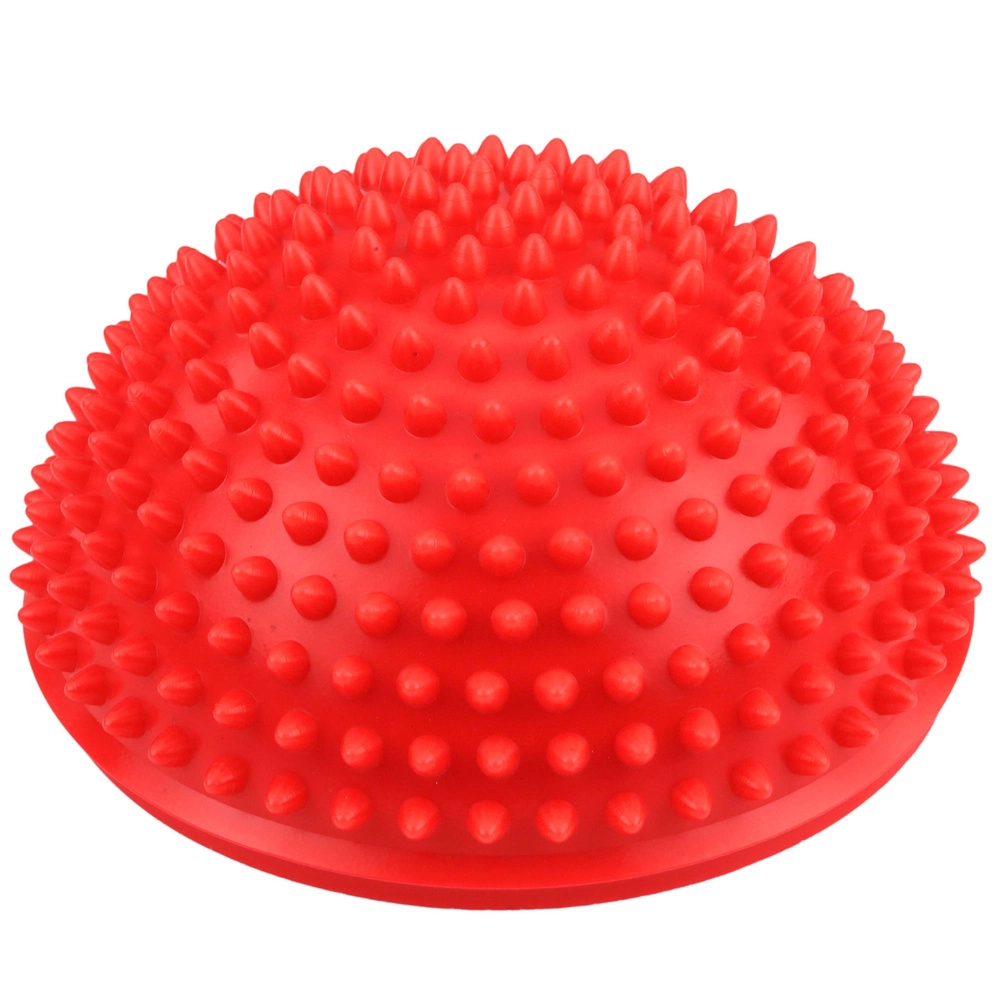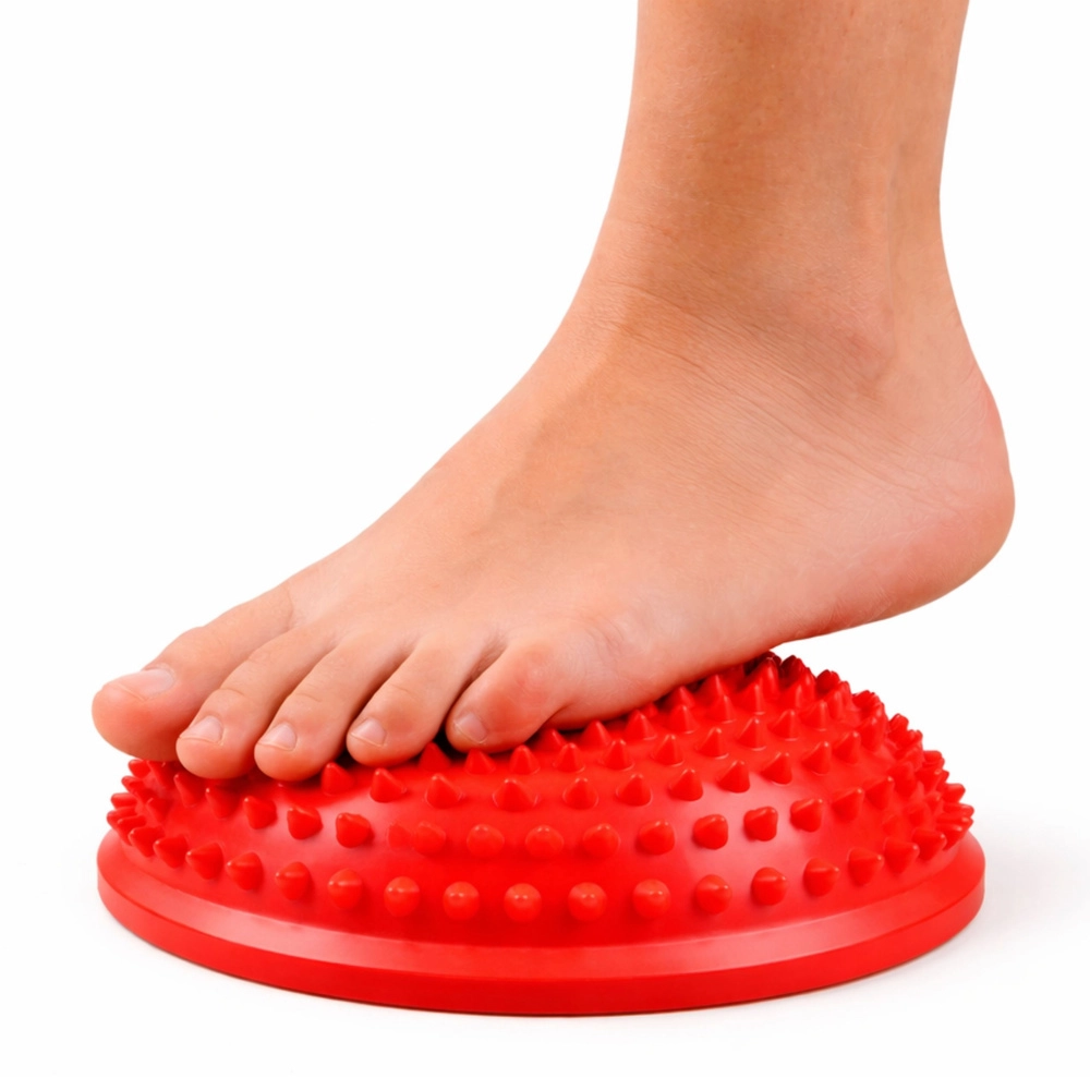 Ta rdeča senzorična polkrogla je praktičen pripomoček za krepitev trupa, izboljšanje koordinacije in sprostitev mišične napetosti. Teksturirana površina z masažnimi izrastki nudi prijetno stimulacijo stopal in pomaga pri pravilni aktivaciji stopalnega loka.