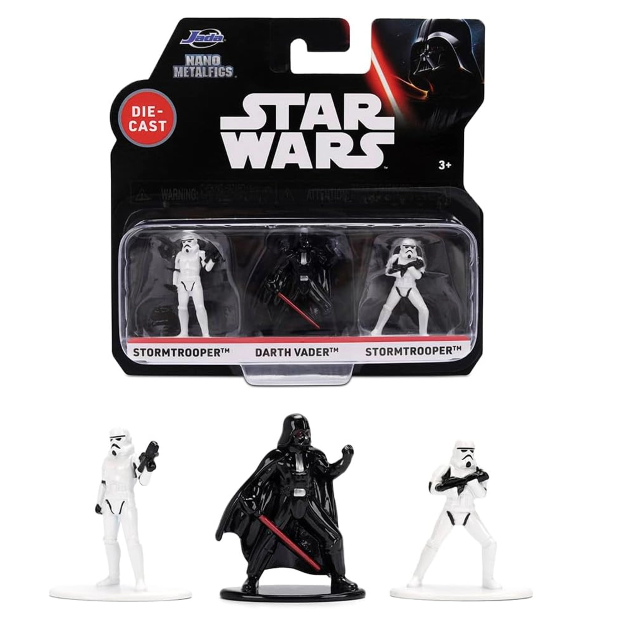 Odkrijte moč Imperija v miniaturah s setom Jada Toys Nano Metalfigs. Tri natančno izdelane figure – Darth Vader in dva Stormtrooperja – imajo avtentične poze, navdihnjene s filmi STAR WARS. Kovinska izvedba figuricam daje prijetno težo, visoko vzdržljivost in zbirateljski značaj.