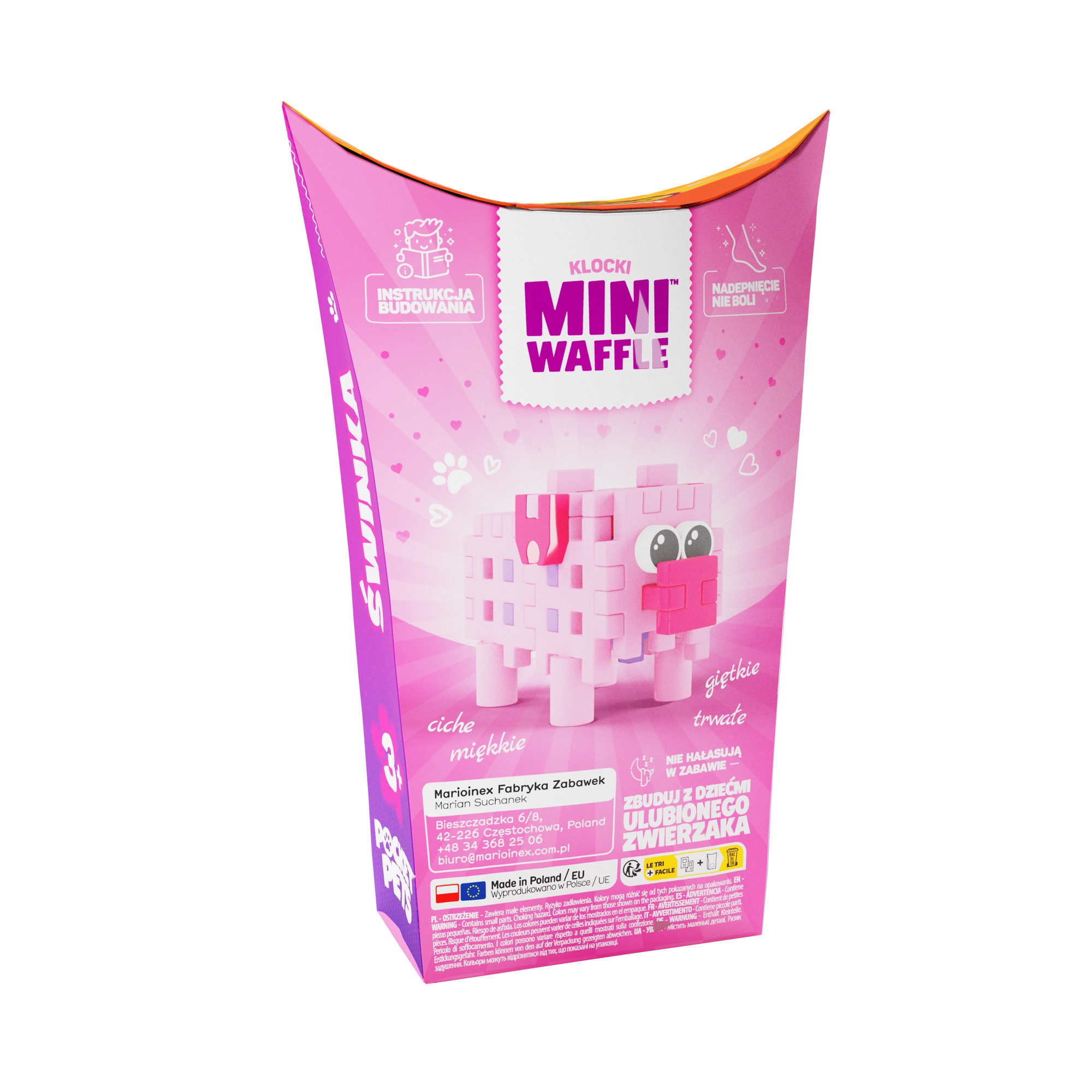 Odkrijte zabavni gradbeni komplet Mini Waffle Pocket Pets – pujsek znamke Marioinex, ki spodbuja kreativnost, fino motoriko in logično mišljenje. Kompaktni set z 25 barvnimi koščki omogoča otrokom sestaviti prikupno figurico pujseka in jo vključiti v lastne zgodbe. Deli so prožni, trpežni in varni, zlahka se spajajo in razdvajajo ter odlično ustrezajo drugim setom Mini Waffle.