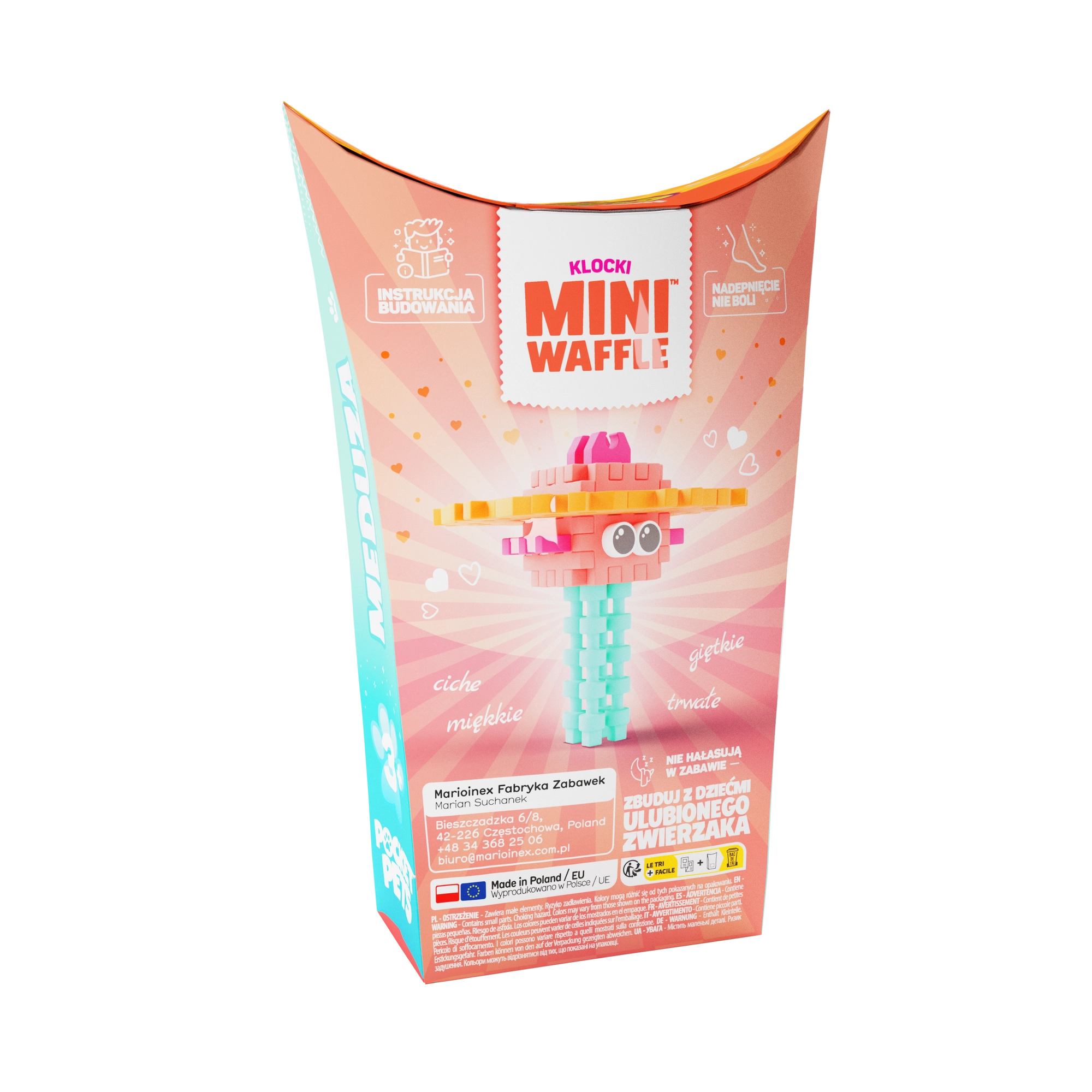 Odkrijte zabavo s konstruktorjem Mini Waffle Pocket Pets – Meduza blagovne znamke Marioinex. Kompaktni set z 25 barvnimi koščki omogoča otrokom sestavljanje figurice meduze v 2D in 3D, razvija ustvarjalnost, fino motoriko in logično razmišljanje. Deli so elastični, trpežni in varni ter odlično združljivi z drugimi seti Mini Waffle.