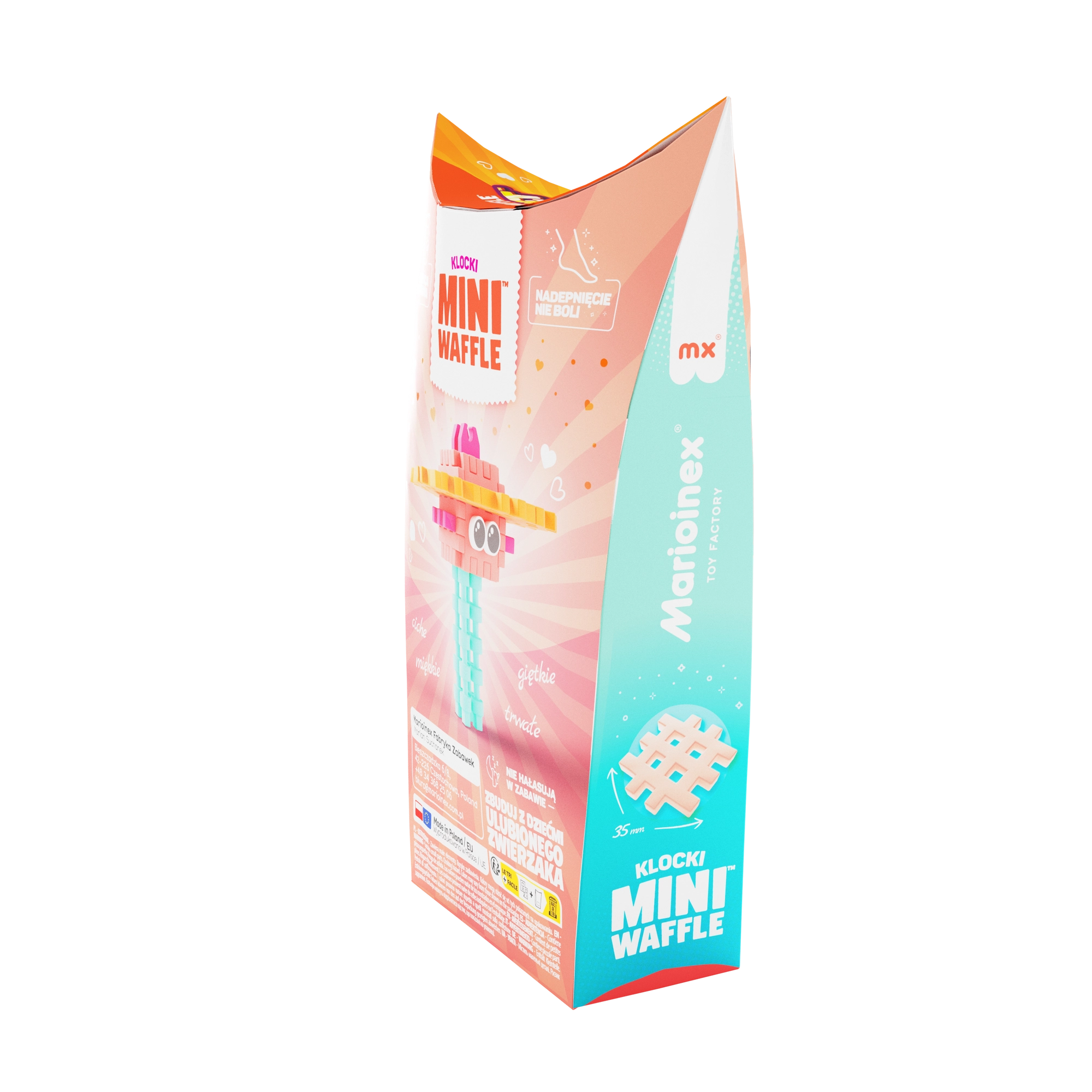 Ustvarite svoj lastni morski svet s setom Mini Waffle Pocket Pets – Meduza. Zahvaljujoč upogljivim in prijetnim koščkom lahko otroci modele zlahka sestavljajo in razstavljajo, preizkušajo nove kombinacije ter jih povezujejo z drugimi konstruktorji Mini Waffle. Set je idealen za dečke in deklice od 3 let naprej ter podpira samostojno igro in skupno ustvarjanje.