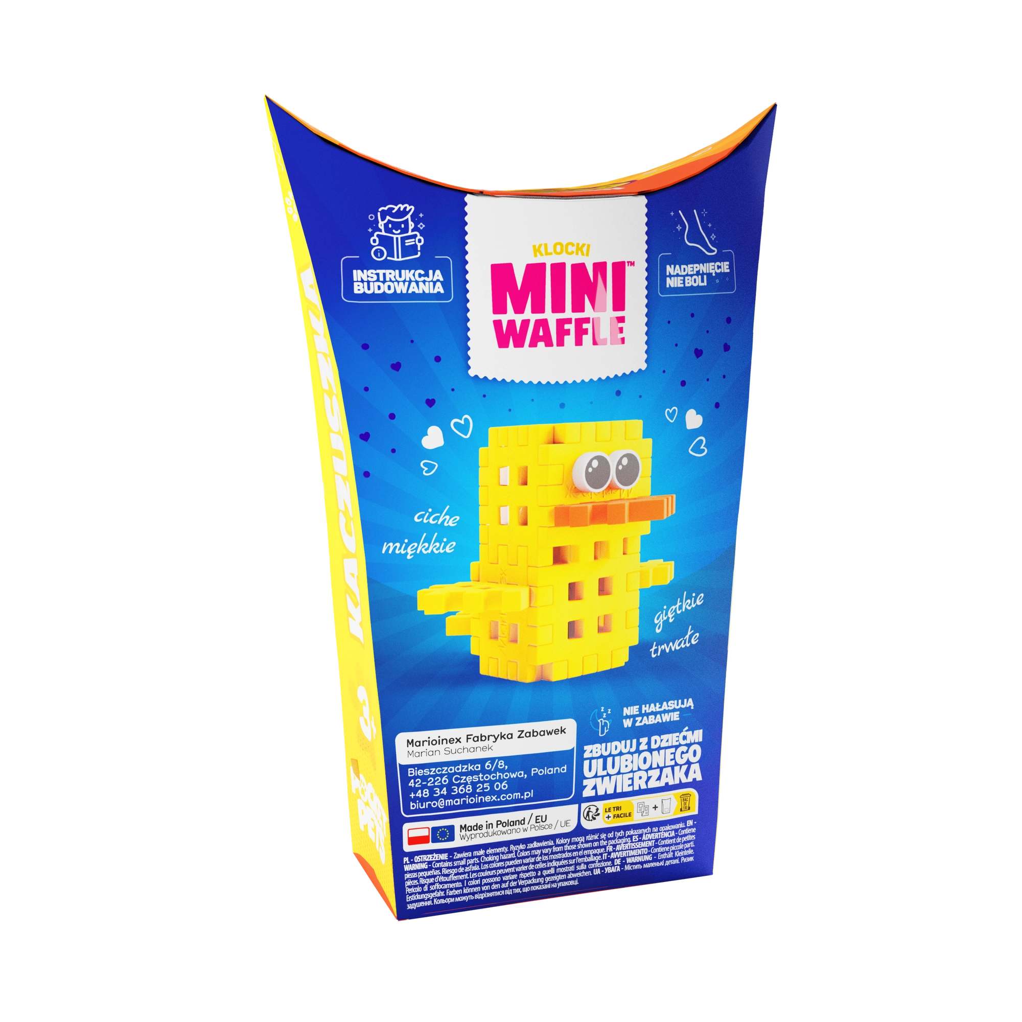 Odkrijte ustvarjalni svet z mini gradbeno setom MARIOINEX Mini Waffle Pocket Pets. Kompaktni set s 16 barvnimi koščki omogoča otrokom, da zgradijo prikupno figurico račkice, pri čemer razvijajo kreativnost, fino motoriko in logično mišljenje. Deli so mehki, vzdržljivi in varni, enostavno se spajajo in razdvajajo ter odlično pašejo k drugim setom Mini Waffle.