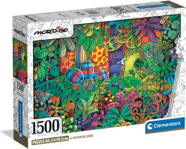 Potopite se v svet duhovitih ilustracij MORDILLO in odkrijte veselje do sestavljanja s sestavljanko CLEMENTONI. Visokokakovosten tisk, natančni izseki in trden karton zagotavljajo popolno prileganje in dolgo življenjsko dobo. Sestavljanka s 1500 kosi je idealna izbira za naprednejše sestavljavce, ki iščejo izziv in sprostitev.