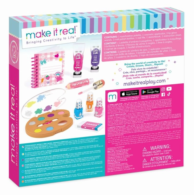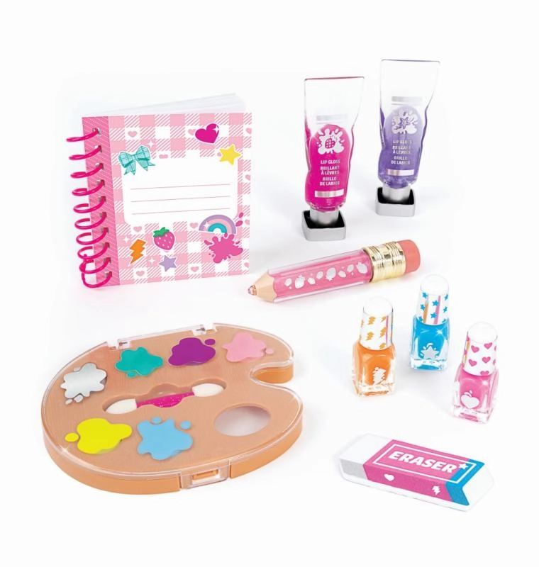 V kompletu so glossi za ustnice, stilizirani kot slikarske tube, trije laki za nohte v živih odtenkih ter pilica za nohte v obliki radirke za popolno urejene nohte. Vse je zasnovano tako, da podpira ustvarjalno igro, varno eksperimentiranje in razvoj sloga pri otrocih od 8 let.