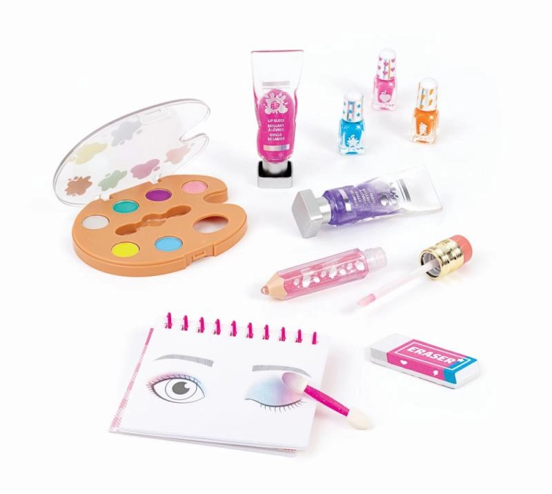 Odkrijte igriv kozmetični set za male umetnike: paleto senčil za oči v obliki slikarske palete, glosse za ustnice kot »barvne tube«, tri lake za nohte in skicirko za oblikovanje videzov. Idealno za otroke od 8 let – spodbuja ustvarjalnost, samospoznavanje in zabavno učenje ličenja z varno testiranimi izdelki.