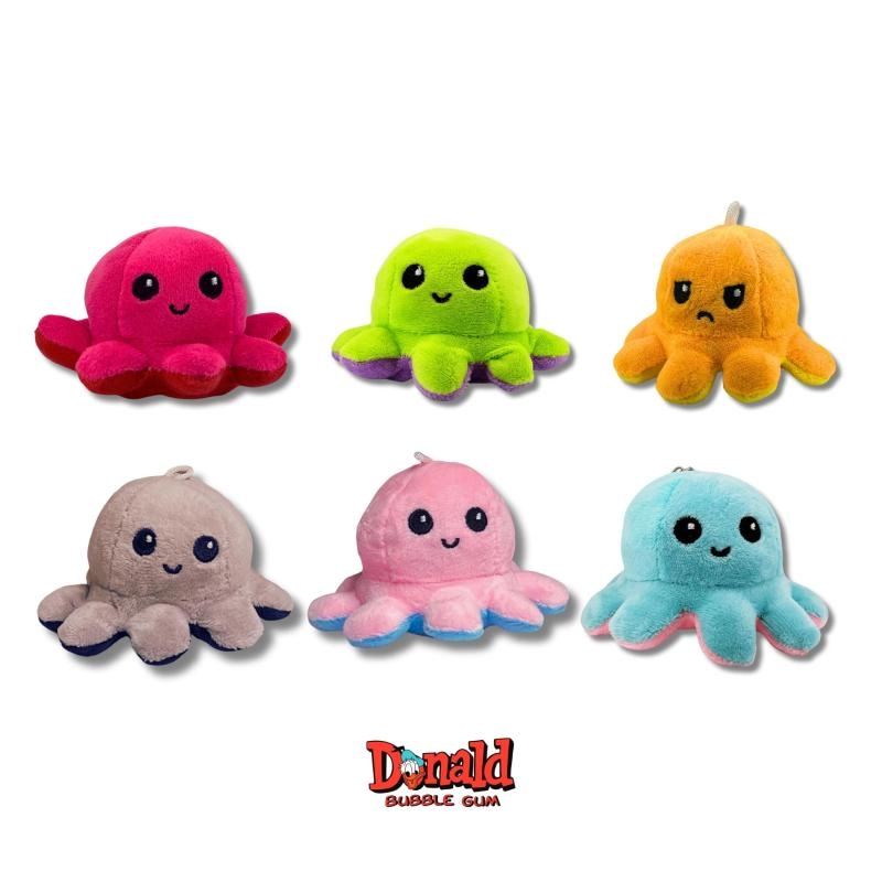 Kapsula polna veselja za majhne in velike! V notranjosti najdeš mehko Flip plišasto hobotnico z dvema izrazoma ter 5 žvečilk DONALD. Dovolj je, da hobotnico obrneš in odkriješ njen nov videz – odlična zabava za otroke in zbiratelje, idealna kot darilo ali majhna nagrada.