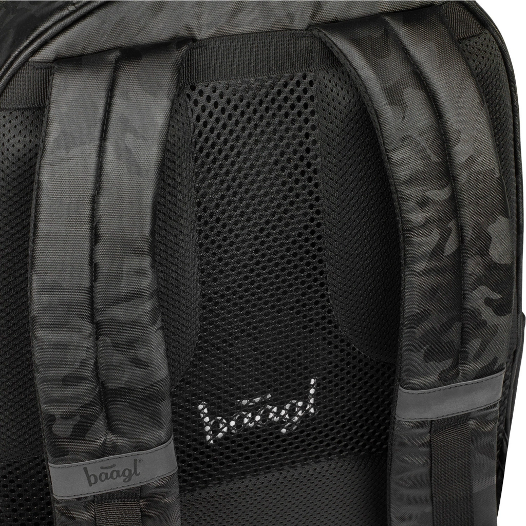 Baagl Coolmate Onyx je prostoren šolski nahrbtnik s prostornino 35 l, ki združuje udobje, vzdržljivost in pametno organizacijo. Lahka konstrukcija (največ 1.100 g) omogoča prijetno nošenje skozi ves dan, medtem ko ergonomsko oblikovano hrbtišče, oblazinjene naramnice in prsni trak zagotavljajo stabilnost tudi pri polni obremenitvi.