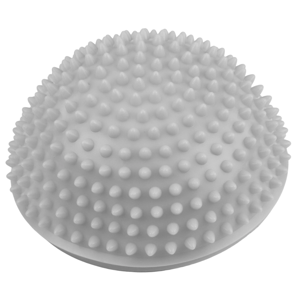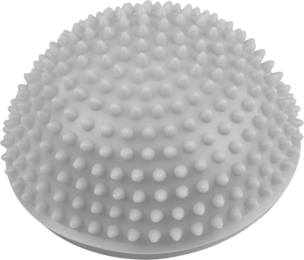 Univerzalna senzorična polkrogla za trening ravnotežja, masažo stopal in senzorično stimulacijo. Teksturirane izbokline spodbujajo prekrvavitev, aktivirajo receptorje in pomagajo pri stabilizaciji telesa. Odporna elastična zasnova in nedrseča osnova zagotavljata varno vadbo doma, v šoli in pri fizioterapiji.