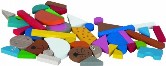 S 44 barvitimi lesenimi delčki z magnetom bodo otroci ustvarili desetine motivov – od živalic do preprostih zgradb. Idealno za razvoj domišljije in samostojne igre.