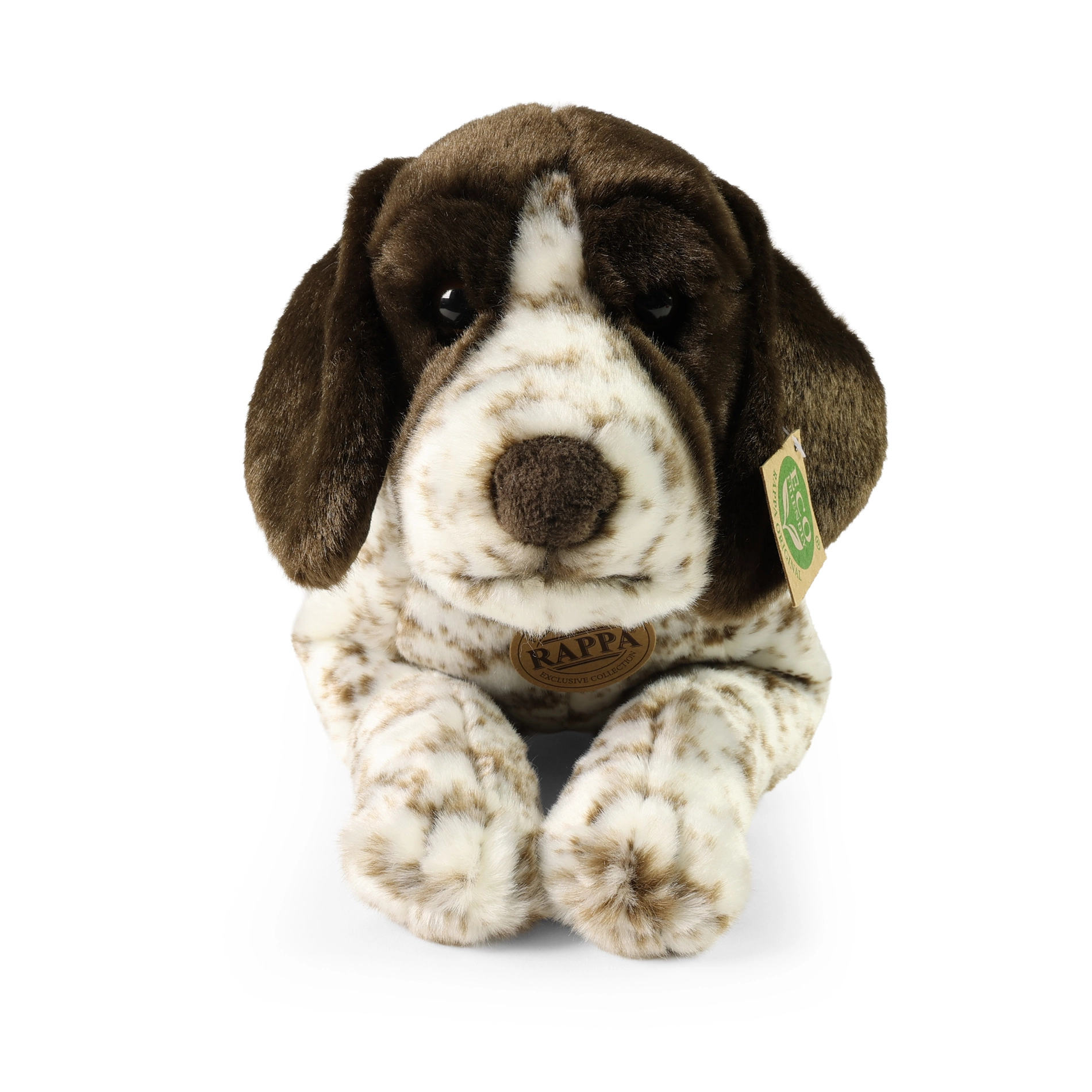 Verno obarvanje z rjavimi pikami, žametno mehak otip in natančna izdelava naredijo plišastega ptičarja za popolnega crkljivega prijatelja.