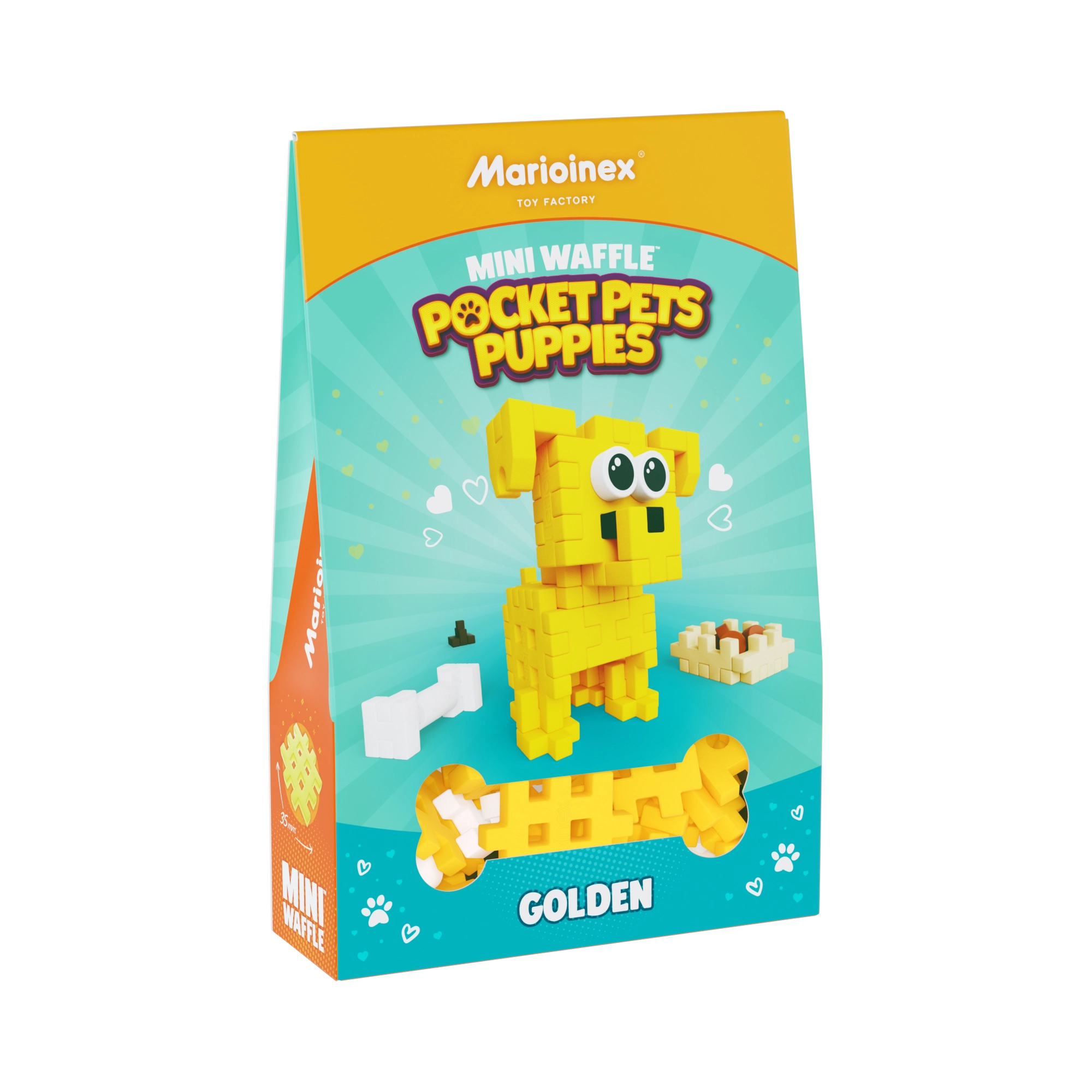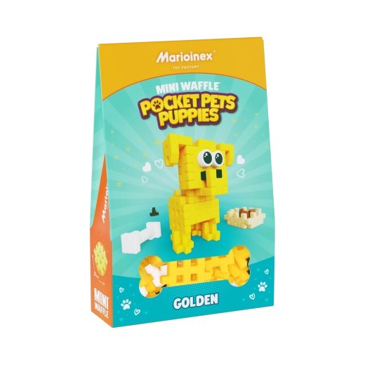 Odkrijte kompaktno sestavljanko MINI WAFFLE Pocket Pets, s katero si bodo otroci zgradili prisrčnega mladička zlatega prinašalca in dodatke – skledico s hrano, kost in kakca. Mehki, varni delčki se zlahka povezujejo in razstavljajo, spodbujajo kreativnost, fino motoriko in logično razmišljanje. Odlično dopolnjuje druge komplete MINI WAFFLE in prinaša ure zabave doma in na poti.