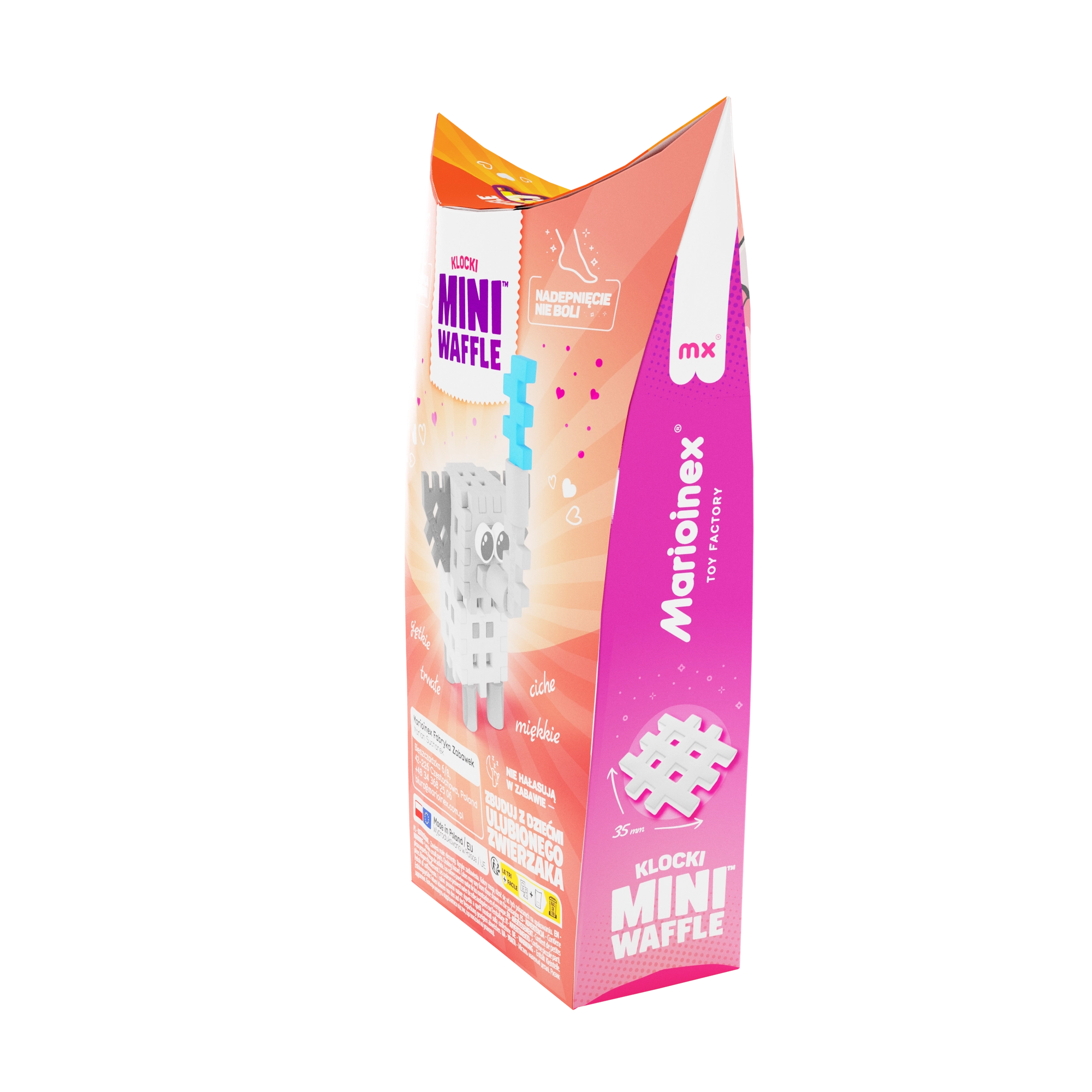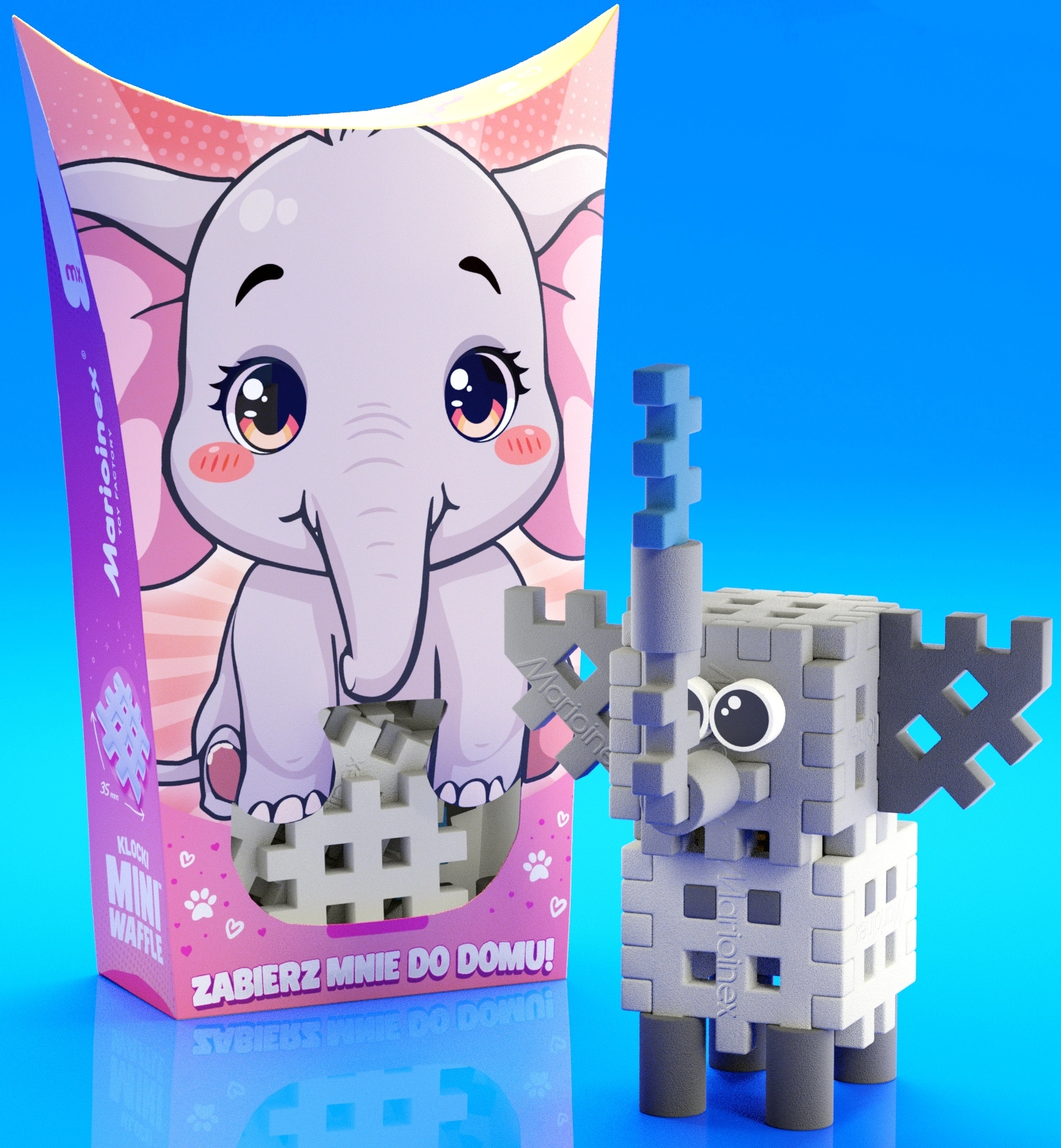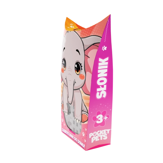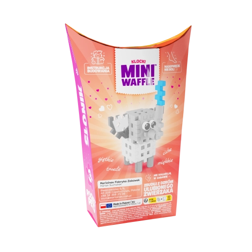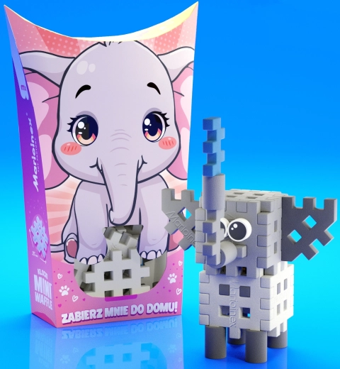Ustvarite prikupnega slončka in ga dodajte svoji živalski zbirki Pocket Pets. Gradbeni komplet bo razveselil otroke že od 3. leta dalje in spodbudil njihovo domišljijo – končana figurica bo junak številnih zgodb in je lahko del večjih stvaritev iz drugih setov MINI WAFFLE.