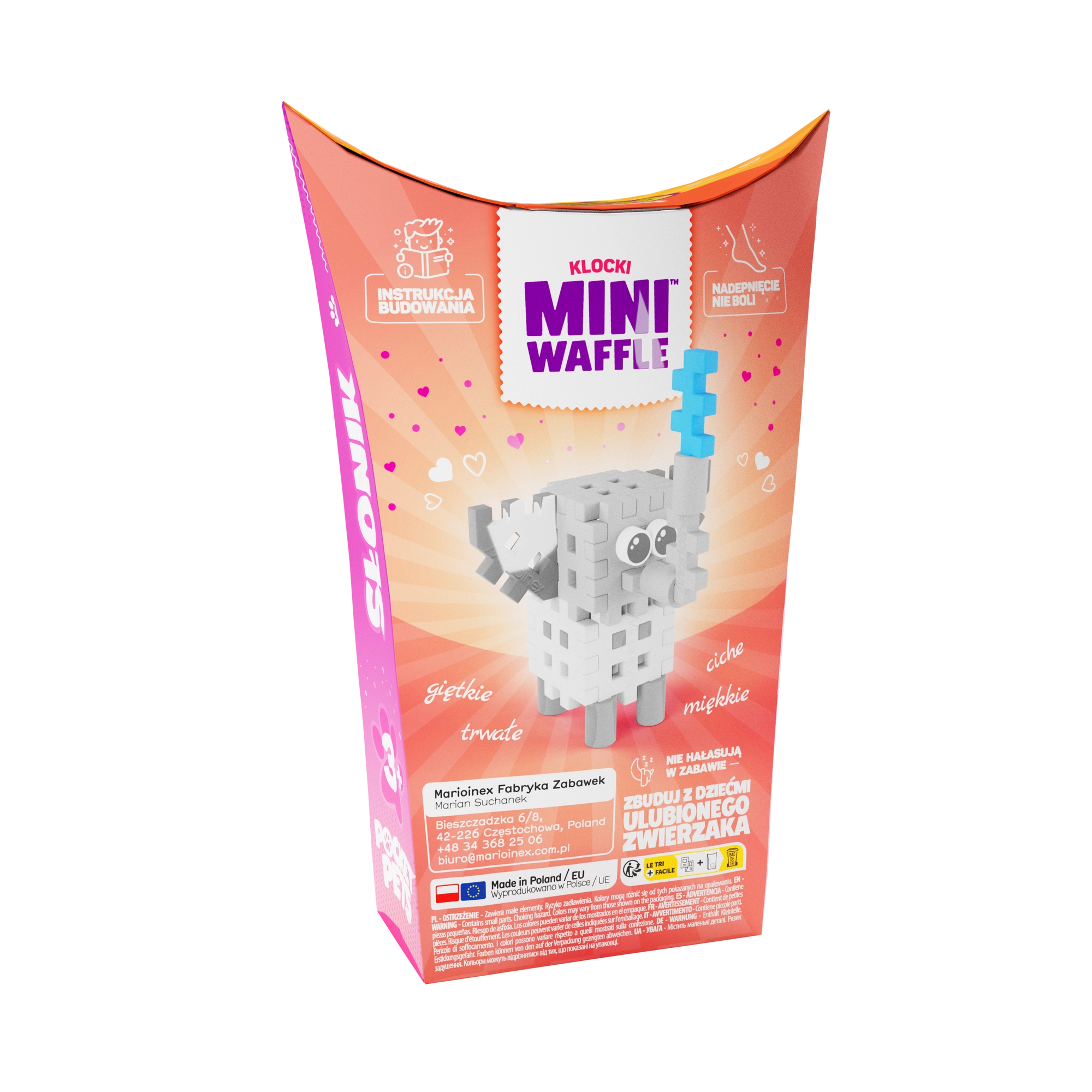 Odkrijte čar ustvarjanja z barvitim gradbenim kompletom MINI WAFFLE Pocket Pets – slonček znamke Marioinex. Kompaktno pakiranje s 25 deli omogoča gradnjo v 2D in 3D, razvija kreativnost, fino motoriko in logično mišljenje. Deli so prožni, trpežni in varni, zlahka se spajajo in razstavljajo ter se odlično ujemajo z drugimi seti Mini Waffle.