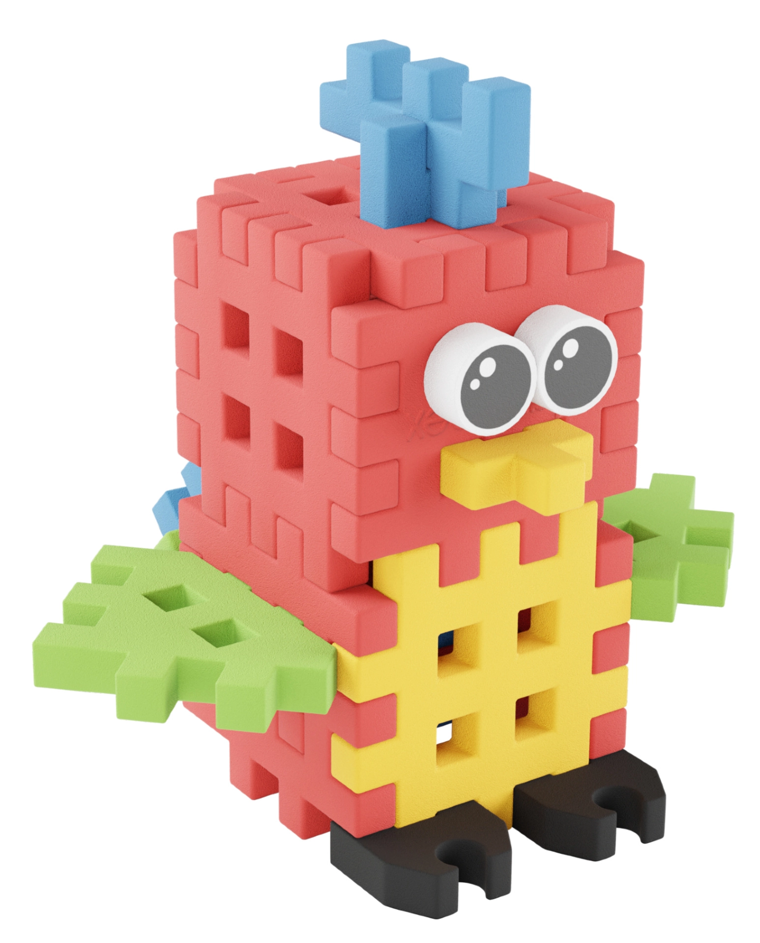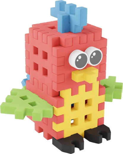 - 25 koščkov za hitro in zabavno sestavljanje figurice papige.