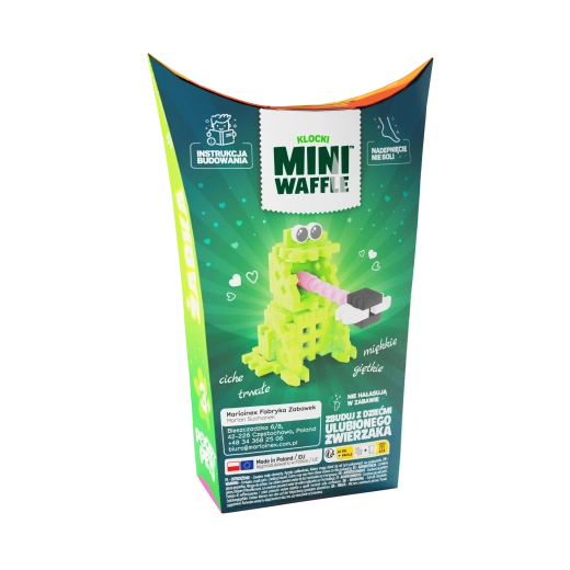 Stavebnica Mini Waffle Pocket Pets – žabka je idealna izbira za male graditelje. Otroci lahko iz 34 delov sestavijo svojo žabico, ki se lahko spremeni v junaka njihovih zgodb ali postane del večje zbirke živalic iz serije Pocket Pets. Zaradi možnosti gradnje v 2D in 3D se naravno razvijata domišljija in potrpežljivost.