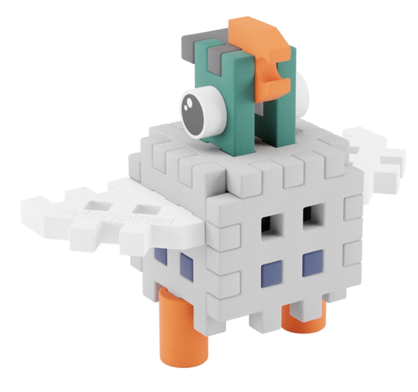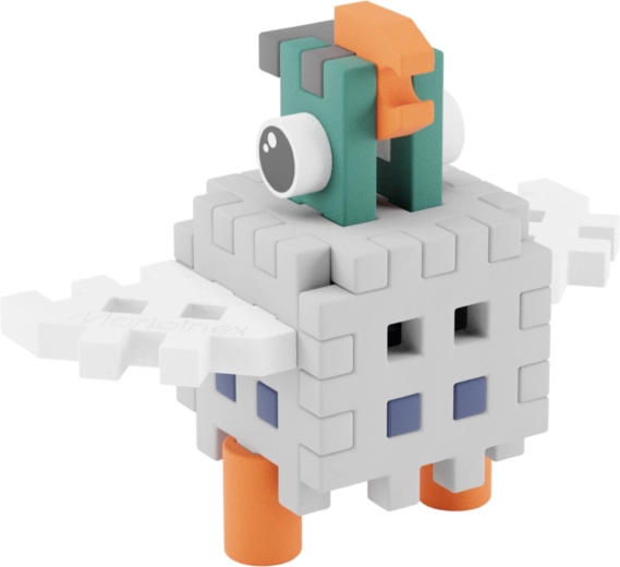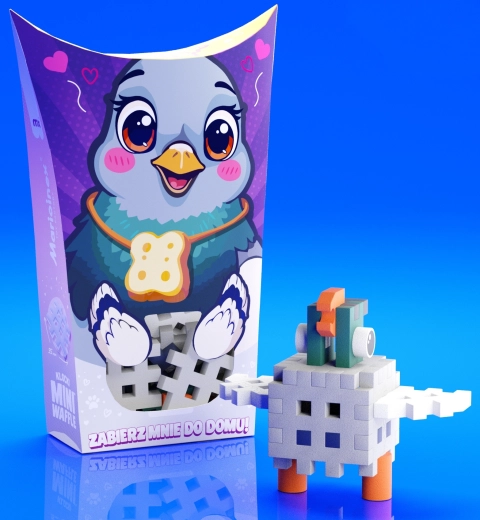 Gradbeni set Mini Waffle Pocket Pets – golob je idealna izbira za male graditelje od 3 let naprej. Otroci iz 16 koščkov sestavijo svojega goloba, ga vključijo v zgodbe ali razširijo svojo zbirko živalic Pocket Pets. Deli Mini Waffle so mehki, prijetni na dotik in se zaradi pametne oblike zlahka zlagajo v 2D mozaike in 3D modele.