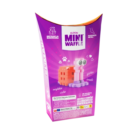 Mini gradbeni set iz priljubljene serije Pocket Pets prinaša veselje hitre gradnje in dolge igre. Otroci lahko ustvarjajo v 2D in 3D, si izmišljajo lastne zgodbe in širijo zbirko živalic. Zahvaljujoč združljivosti z drugimi seti MINI WAFFLE dobite neomejene možnosti kombiniranja.