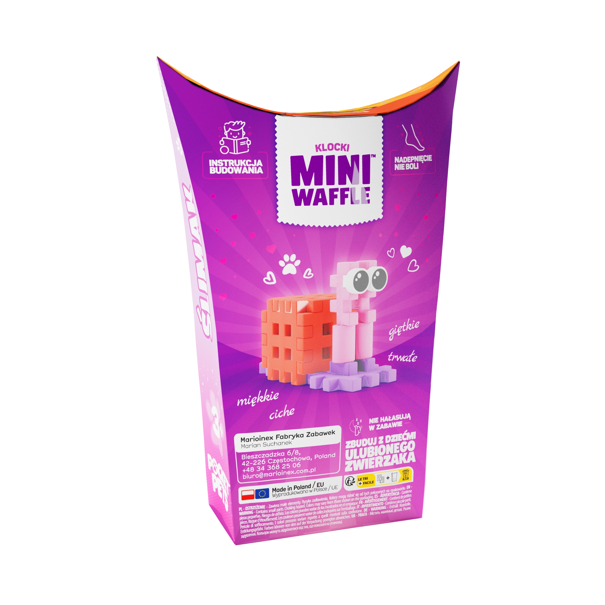 Odkrijte ustvarjalni svet gradbenega kompleta MINI WAFFLE Pocket Pets – polž blagovne znamke Marioinex. Kompakten set z 15 barvnimi koščki omogoča otrokom sestaviti prisrčno figurico polža ter razvijati ustvarjalnost, fino motoriko in logično mišljenje. Deli so prožni, trpežni in varni, enostavno se spajajo in razspajajo ter odlično dopolnjujejo druge sete MINI WAFFLE.