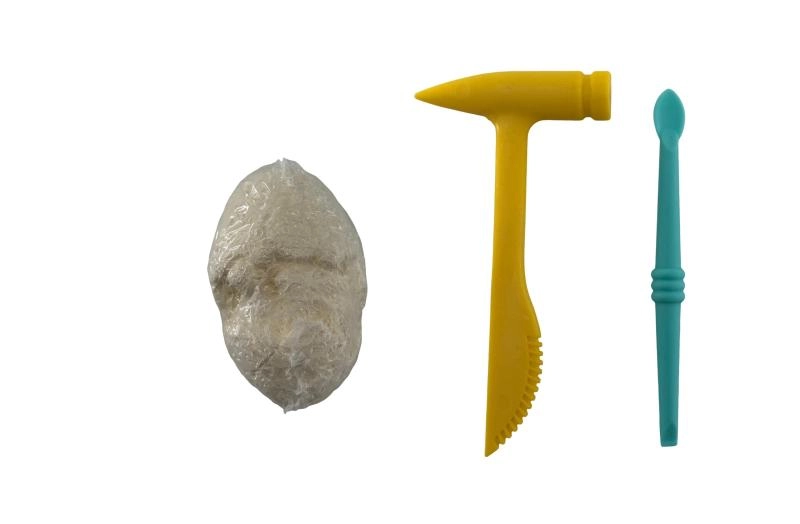 Spremeni domačo mizo v majhno arheološko najdišče. V jajcu se skriva presenečenje – miniaturna figurica dinozavra, ki jo otrok postopoma odkrije in osvobodi. Zabavna dejavnost, ki združuje igro, učenje in vznemirjenje ob odkrivanju.