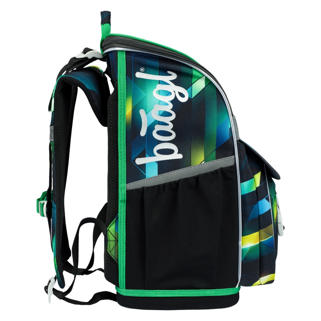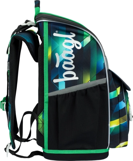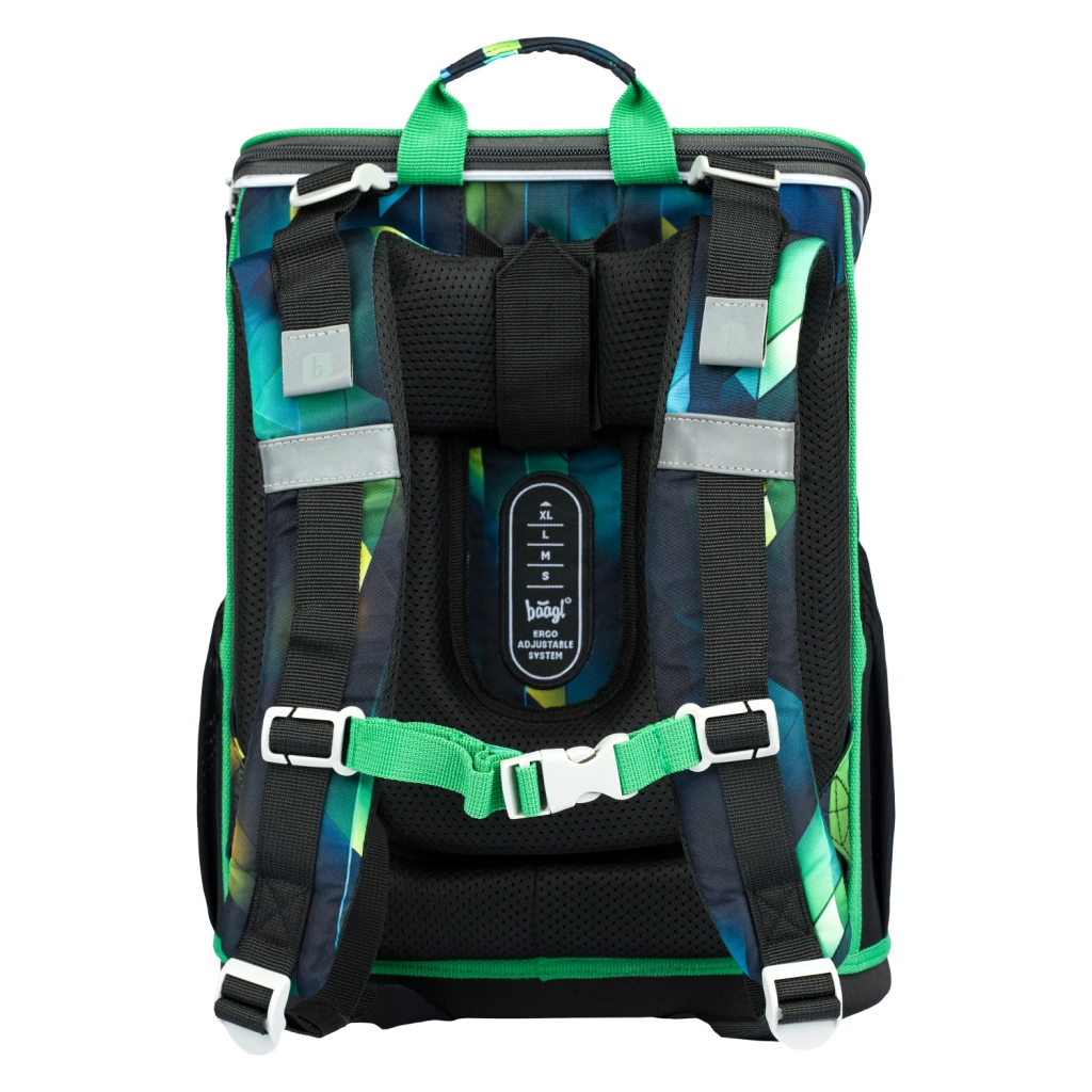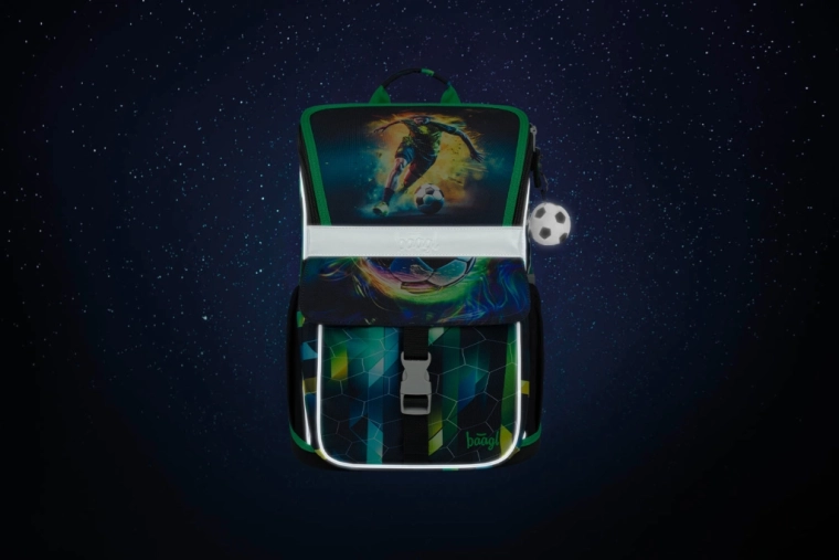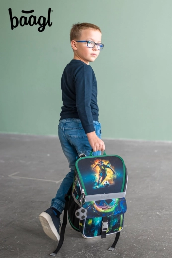 Šolski set BAAGL Zippy Nogomet je idealna izbira od 1. razreda OŠ dalje. Ergonomska aktovka z drsnim sistemom ERGO ADJUSTABLE SYSTEM se popolno prilagodi postavi, ima lahko, a stabilno konstrukcijo, preklopni pokrov za lahek dostop iz klopi ter premišljeno notranjo organizacijo. Slog združuje privlačen nogometni motiv v neonsko zelenih in modrih tonih.