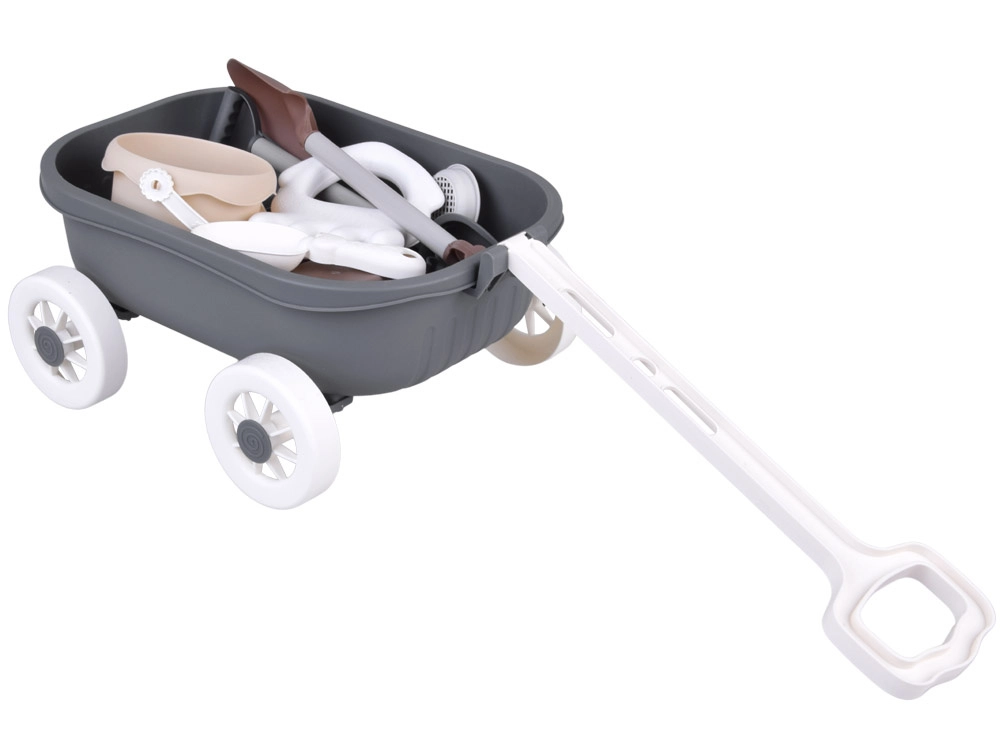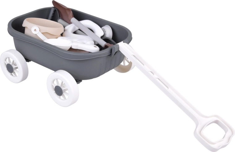 Globoko korito, snemljiva vlečna palica in stabilna široka kolesa zagotavljajo preprosto prevažanje peska, igrač in orodja po različnih podlagah – od vrta do plaže.