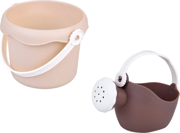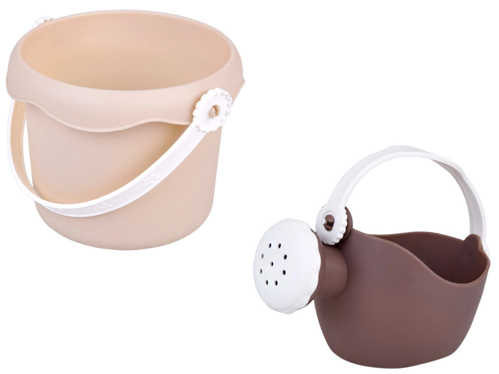 Elegantni peščeni komplet je idealen za male graditelje, ki imajo radi ustvarjanje gradov, predorov in oblik iz peska. Zahvaljujoč robustnemu vozičku z ročajem otroci zlahka prestavijo vse dodatke in material tja, kjer ravno ustvarjajo. Nevrotralna barvna usklajenost v odtenkih sive, bele in bež deluje čisto in moderno.
