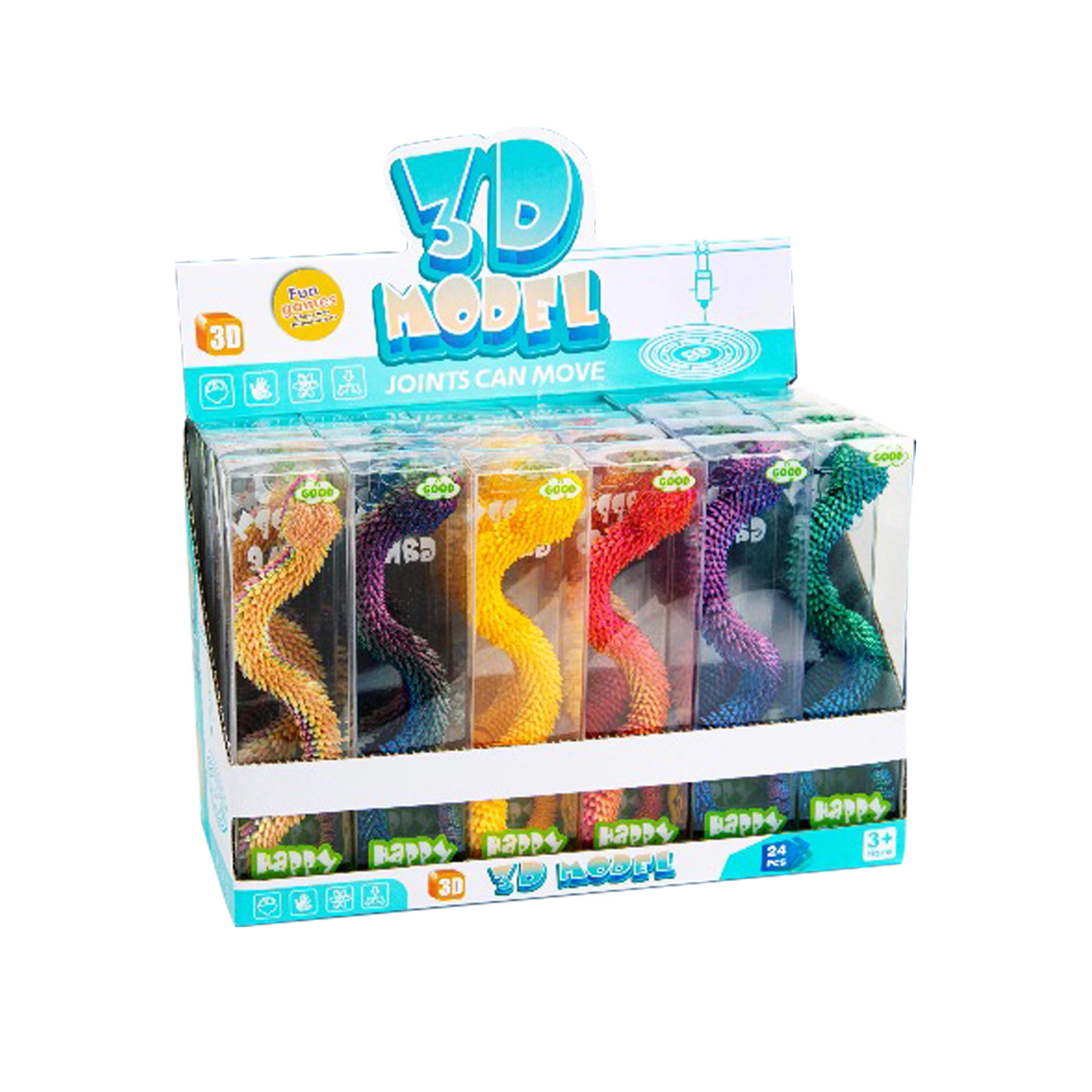 Odkrijte čar ustvarjalne zabave z magično 3D kačo v slogu gada. Segmentirana konstrukcija omogoča tekoče upogibanje in oblikovanje, zato lahko enostavno ustvarite realistične poze, spirale ali izvirne dekoracije. Kovinsko sijoč učinek poudari detajle in igrački doda izrazit videz.