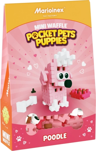 Odkrijte kompaktni gradbeni komplet Mini Waffle Pocket Pets – pudelj znamke Marioinex. Vsebuje 47 barvnih koščkov za sestavljanje figurice kužka z dodatki (skledica s hrano, kost in kakce). Deli so elastični, trpežni in varni, zlahka se povezujejo in razstavljajo ter odlično razvijajo ustvarjalnost, fino motoriko in logično mišljenje. Primerno za 2D in 3D sestavljanje ter popolnoma združljivo z drugimi seti Mini Waffle.