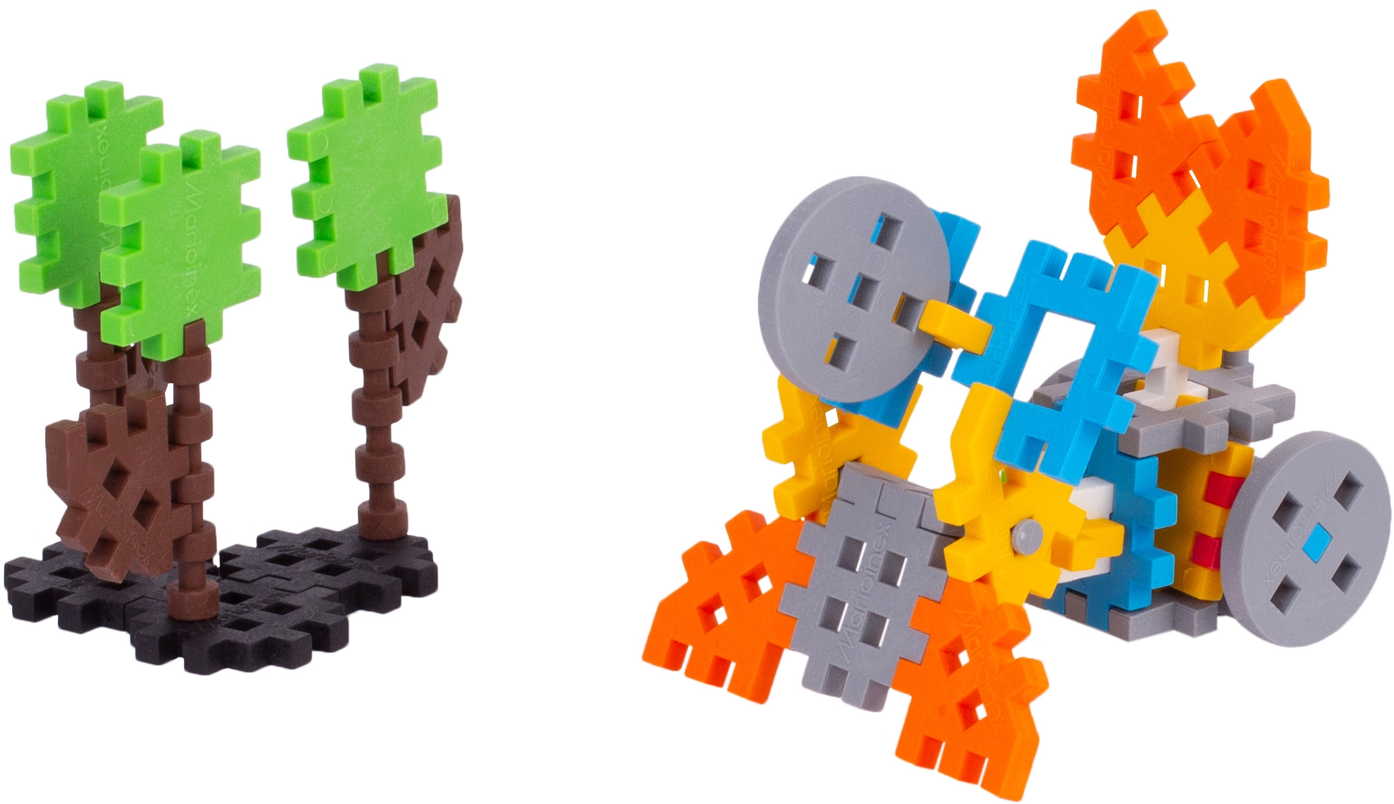 Gradite barvite modele od ptička do malih strojev in vozilc. Modularni sistem spodbuja domišljijo in potrpežljivost pri sestavljanju.