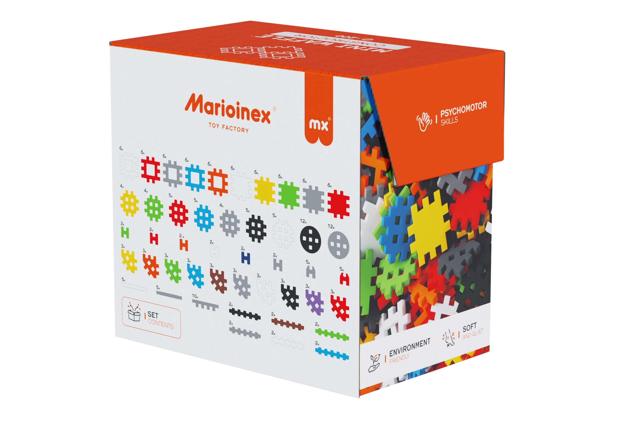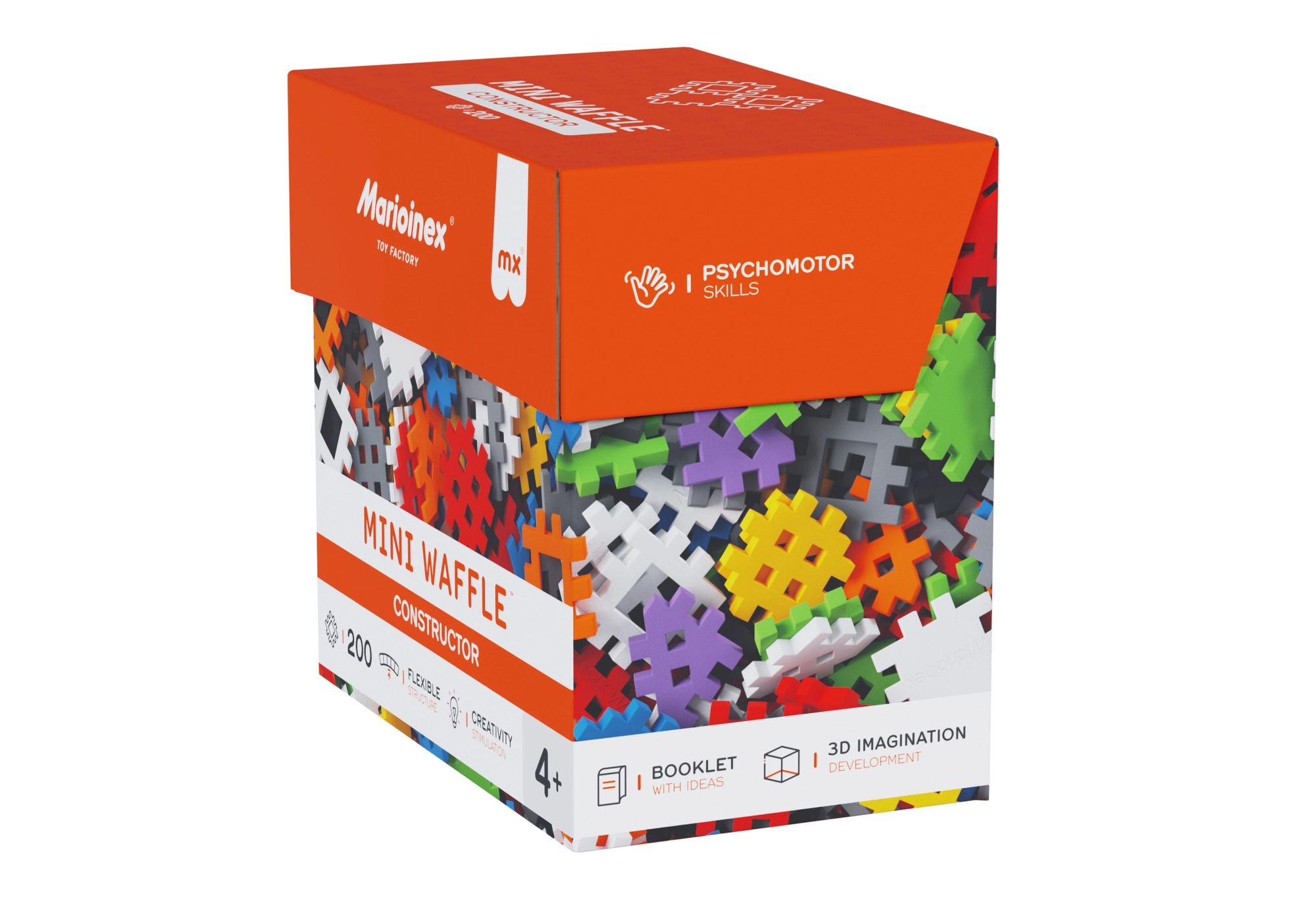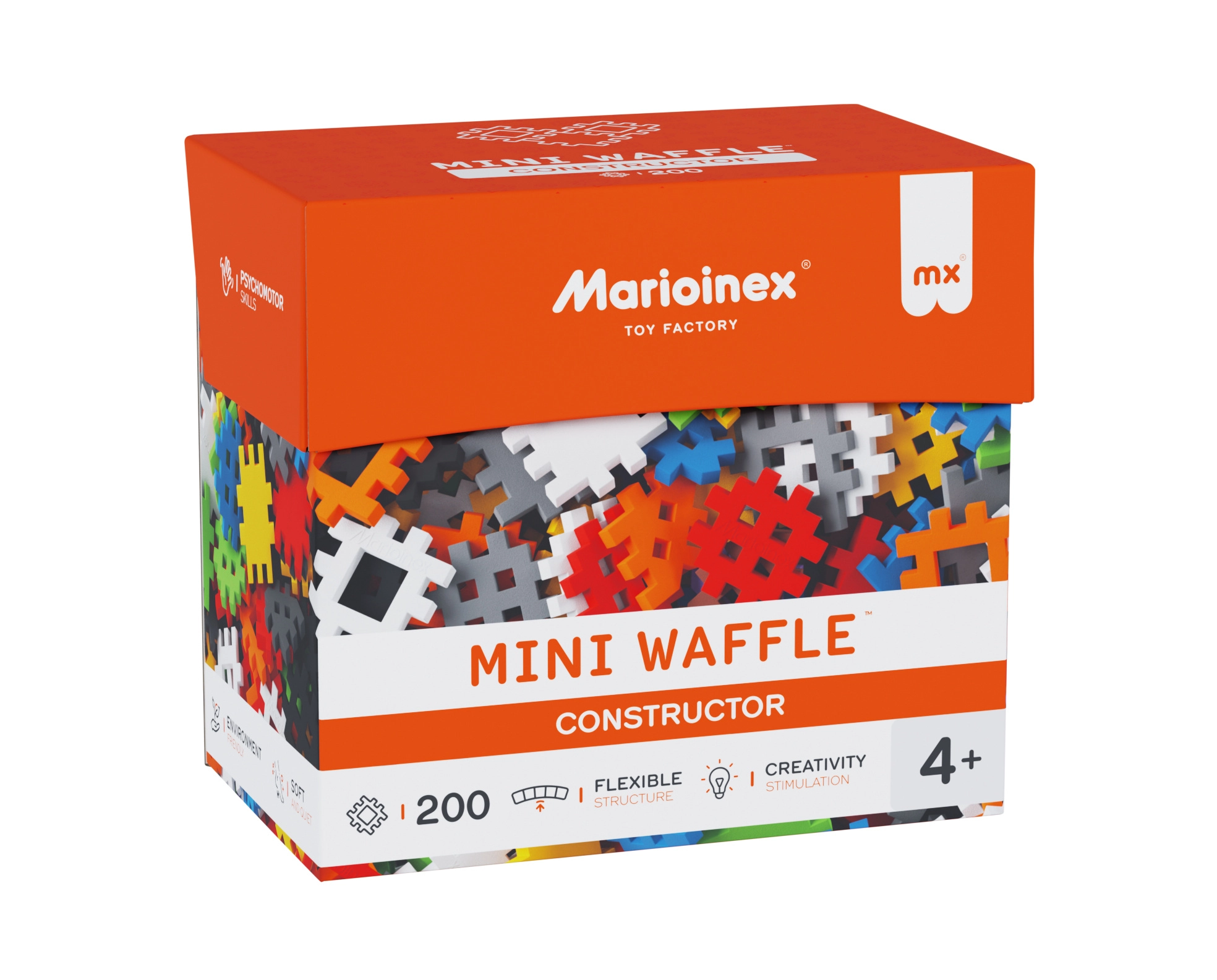 Sestavljanka MARIOINEX Mini Waffle Constructor otrokom prinaša zabavo in učenje v enem. Zaradi edinstvene oblike koščkov se modeli enostavno sestavijo in trdno držijo, hkrati pa jih je mogoče preprosto znova razstaviti. Priložen je navdihujoč knjižici z idejami, ki pomaga pri prvih gradnjah in spodbuja nadaljnjo domišljijo.