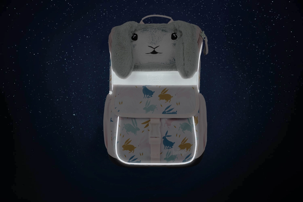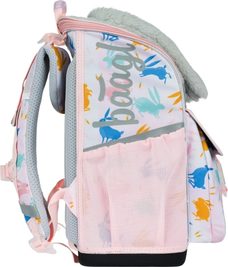 Prisrčen in praktičen šolski set BAAGL Zippy Bunny vsebuje vse, kar prvošolček potrebuje: ergonomsko aktovko, enonadstropno peresnico, vrečko za copate ali telovadbo, otroški predpasnik in denarnico za okrog vratu. Set očara z mehkimi plišastimi detajli in motivom zajčka, ponuja ergonomsko oblikovan hrbtni del, lahko in stabilno konstrukcijo, odsevne elemente ter premišljeno organizacijo za vsakodnevno udobje in varnost.