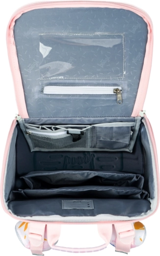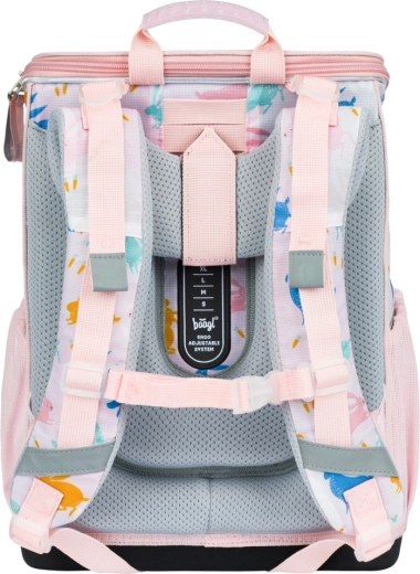 Šolska aktovka Zippy Bunny je zasnovana za otroke od 1. razreda OŠ. Zahvaljujoč drsnemu sistemu ERGO ADJUSTABLE SYSTEM lahko naramnice preprosto nastavite glede na otrokovo višino. Ergonomsko oblikovan hrbtni del, popolnoma nastavljivi naramni, prsni in bočni kompresijski trakovi zagotavljajo zdravo in udobno nošenje. Nov preklopni sistem odpiranja omogoča hiter dostop do pripomočkov kar iz klopi.