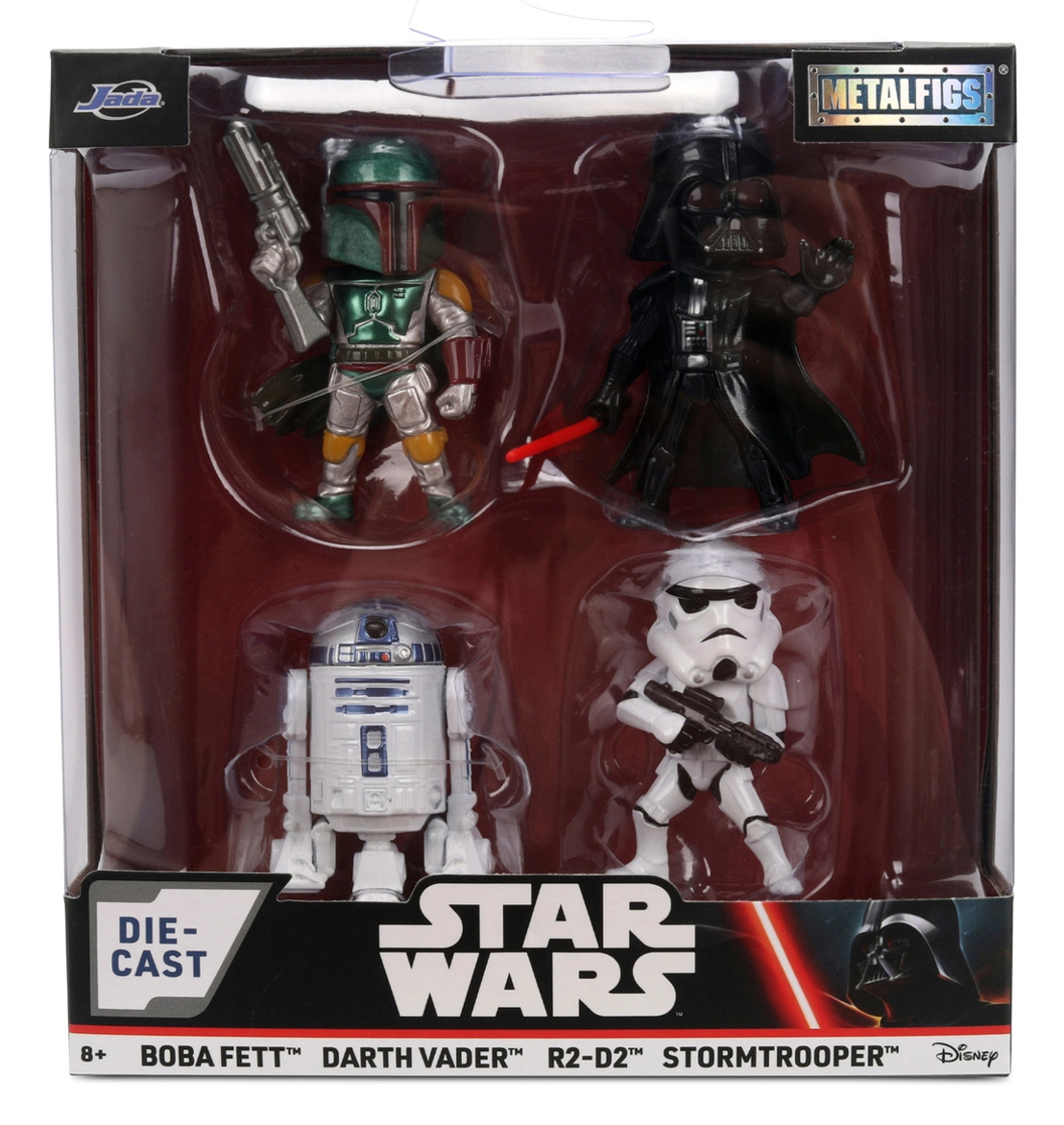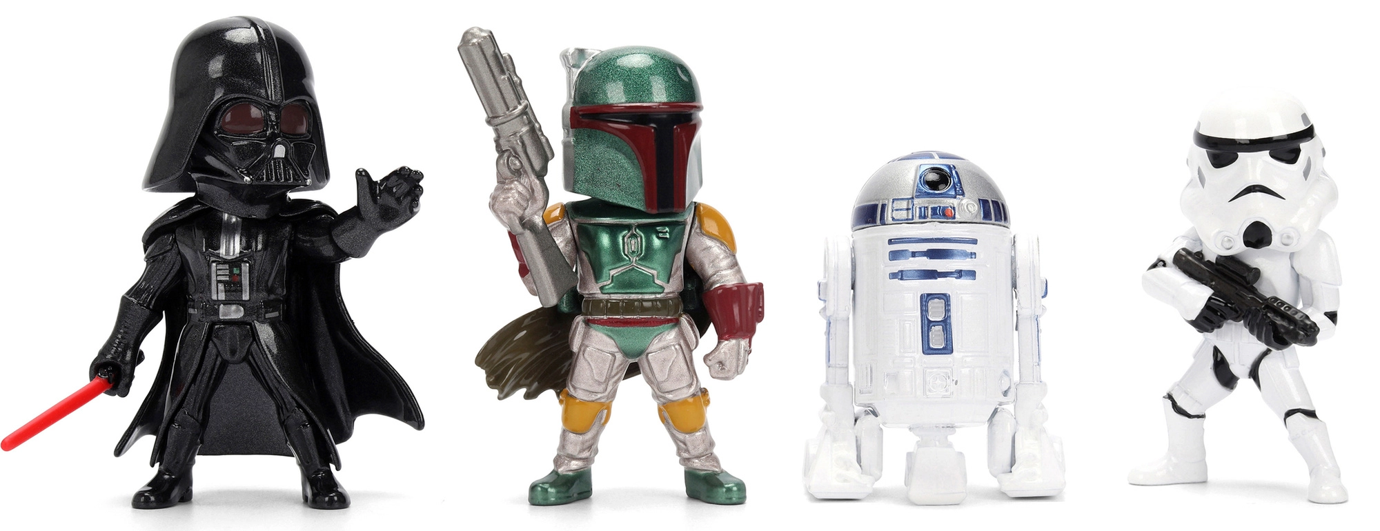 Kolekcionarski set 4 kovinskih figur iz univerzuma STAR WARS proizvajalca Jada Toys bo navdušil tako oboževalce kot otroke. Likom Darth Vader, R2‑D2, Stormtrooper in Boba Fett iz serije Metalfigs izstopajo čvrsta kovinska zasnova, stiliziran dizajn in kompaktna velikost, idealna za razstavljanje in igro.