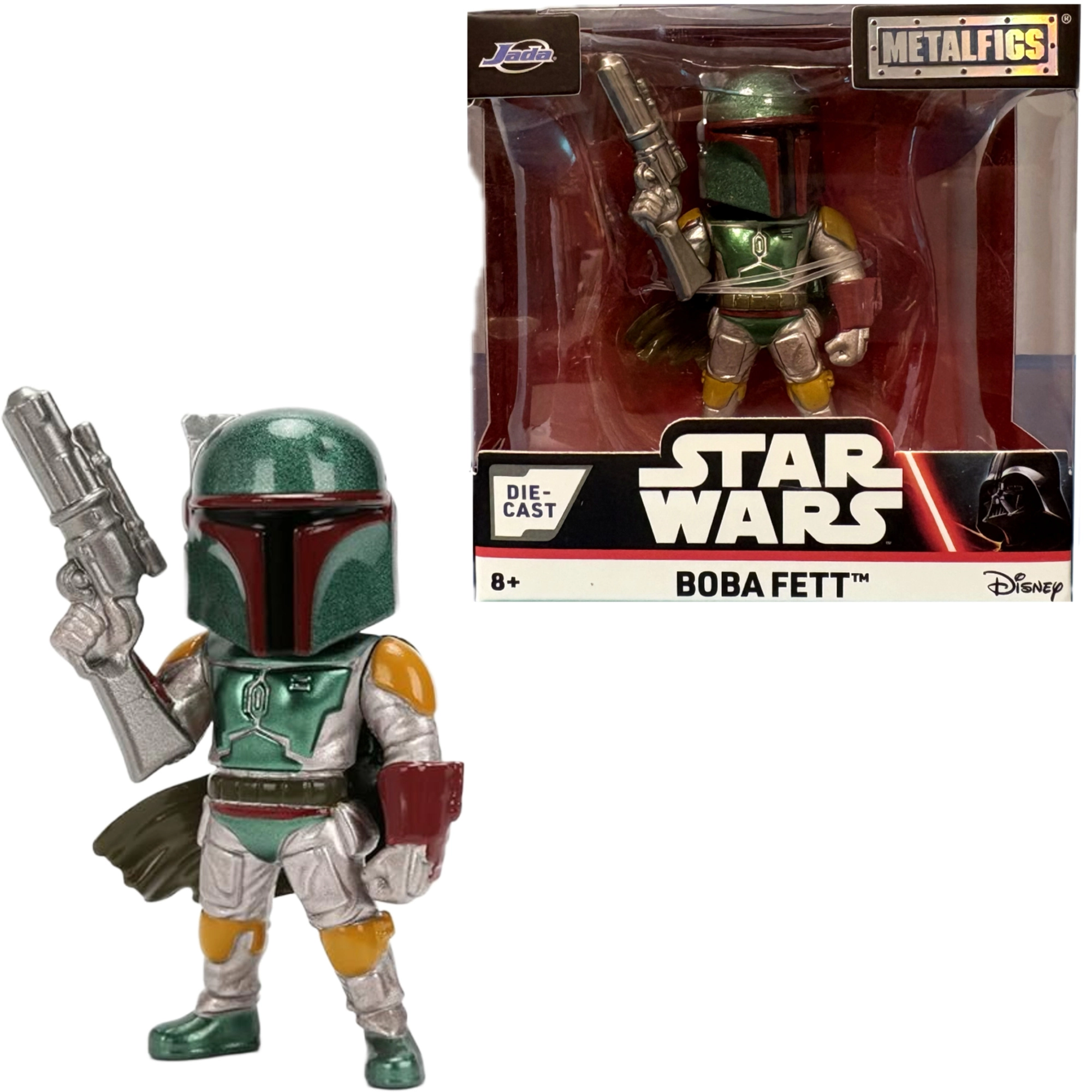 Razširite svojo zbirko z ikoničnim lovcem na glave Boba Fett iz serije STAR WARS. Kovinska figurica iz linije Nano Metalfigs podjetja Jada Toys izstopa po podrobni izdelavi, stiliziranem videzu in kompaktni velikosti, ki je idealna tako za razstavljanje kot za igro.